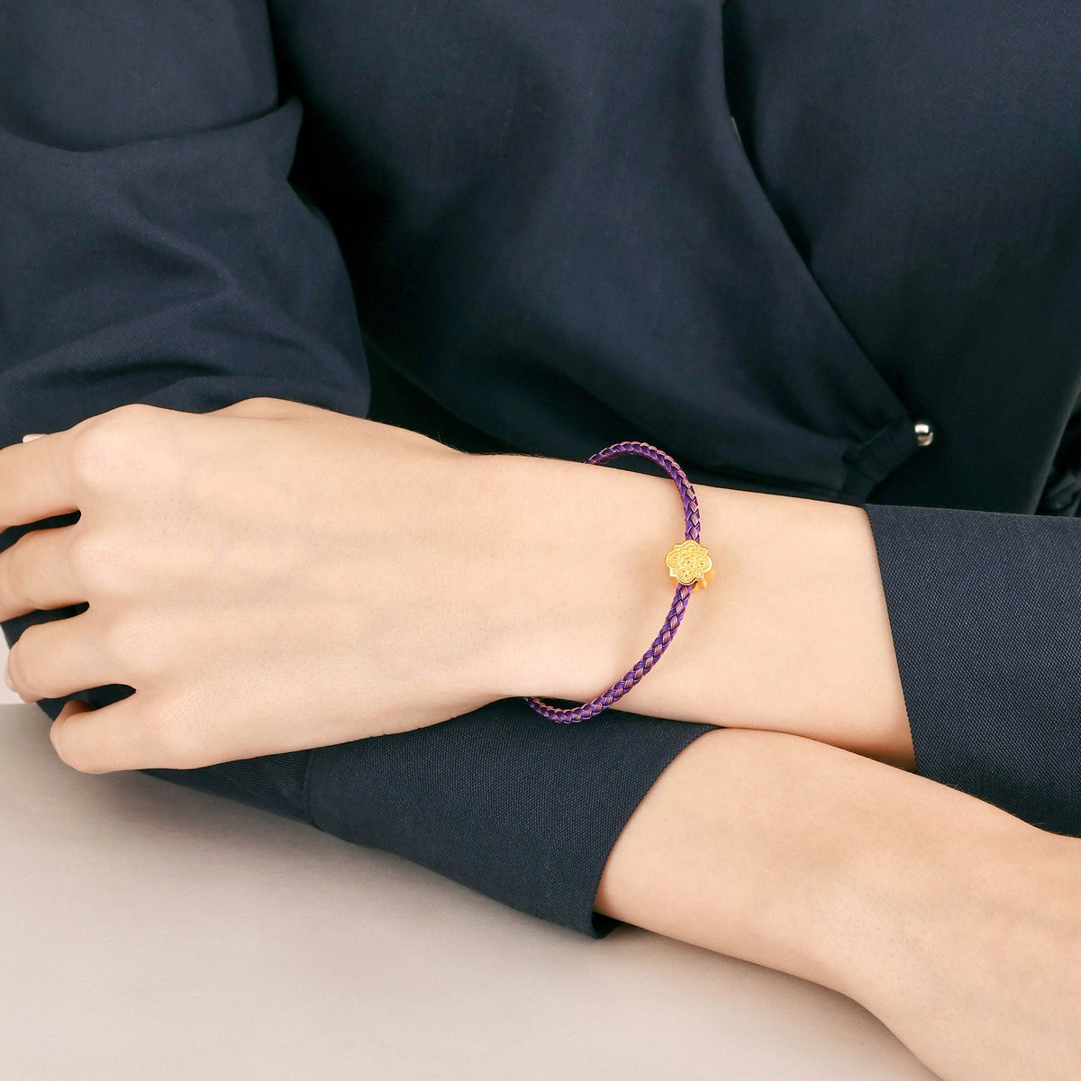 This 'The Art of Romance' 999 Gold Charm by Chow Sang Sang reinterprets classic arts with modern authenticity. This V&A charm features refined detailing that reimagines the Museum Collections of the Middle Ages. Embossed with “ioe saunz fine,” meaning “Joy without end,” it exudes royal grace majestically.