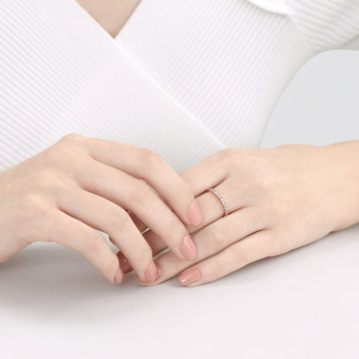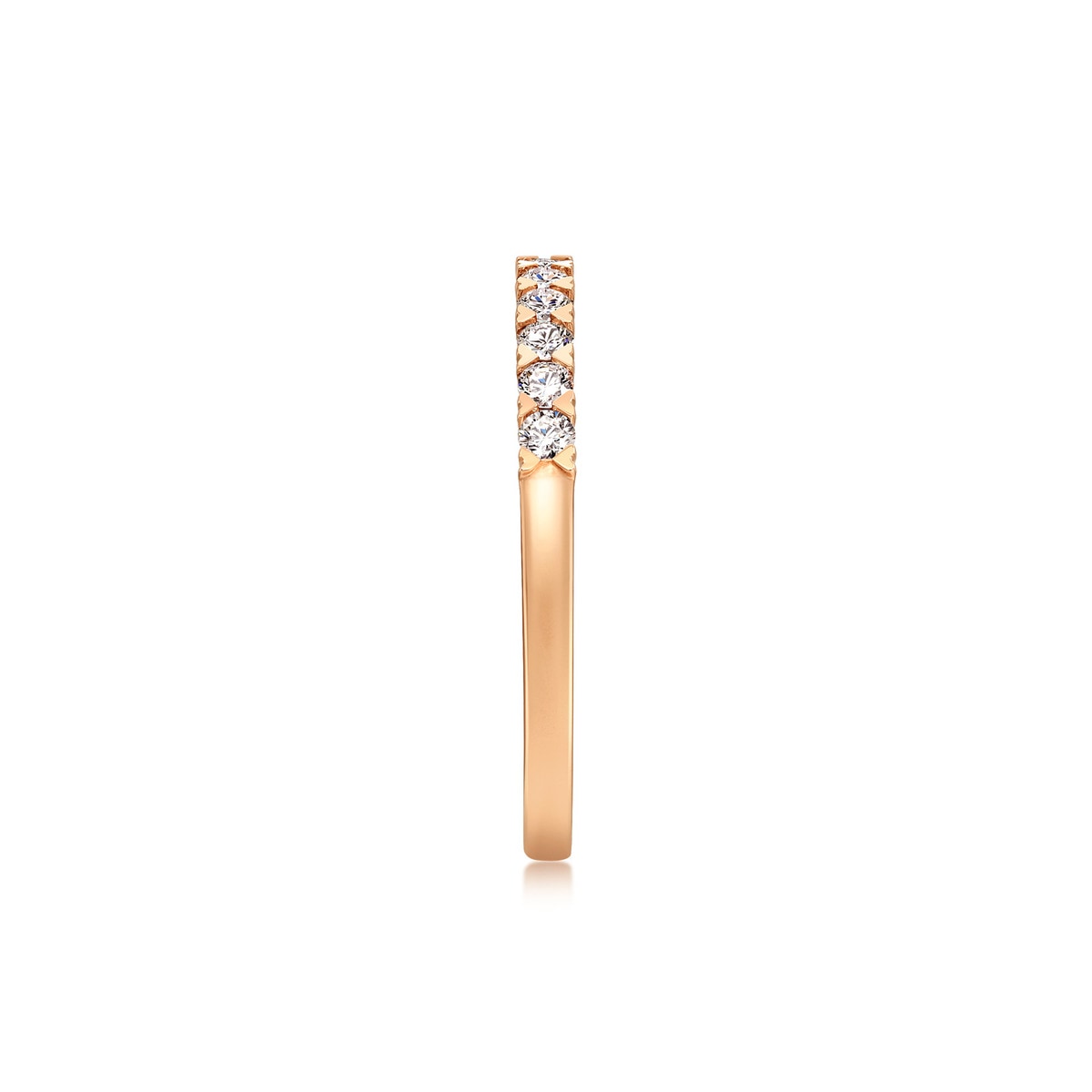This '18K Rose Gold Diamond Ring by Chow Sang Sang is a sleek piece that symbolizes eternal love, featuring a heart-shaped setting for a subtle romantic touch. With minimalist pave diamonds, it can be worn solo or stacked for a personal style.