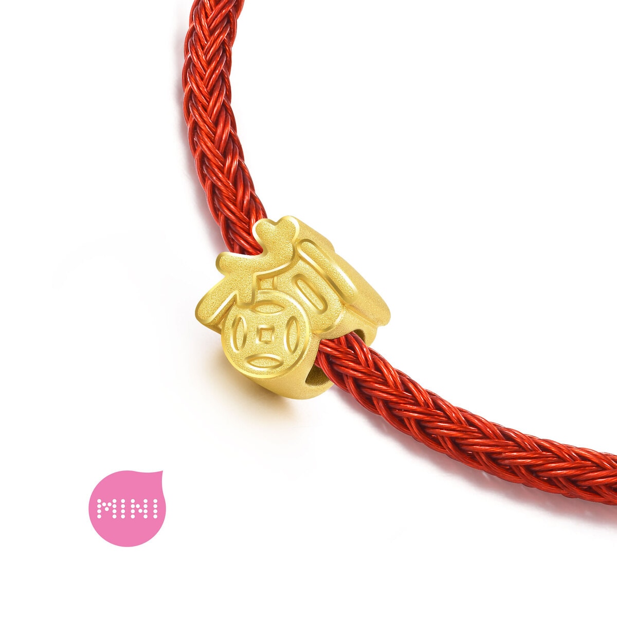 This 'Blessings' 999 Gold Charm by Chow Sang Sang is a Charme Mini, reduced in size yet crafted with exceptional detail. It takes inspiration from the Chinese character for “fortune” and is adorned with an ancient coin. It signifies happiness and richness, offering blessings for the new year.