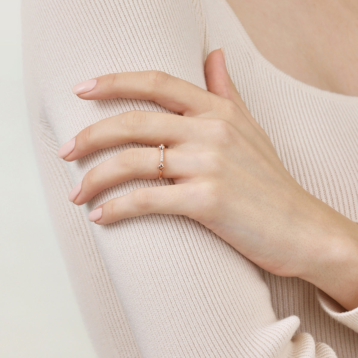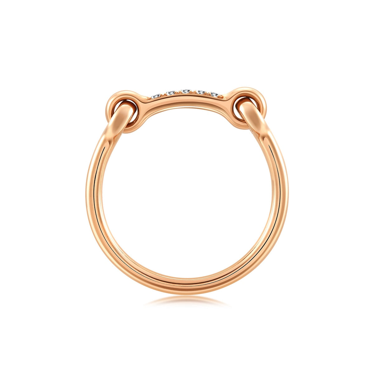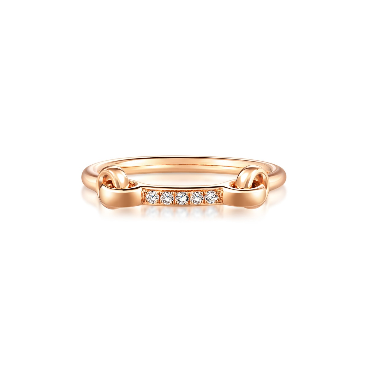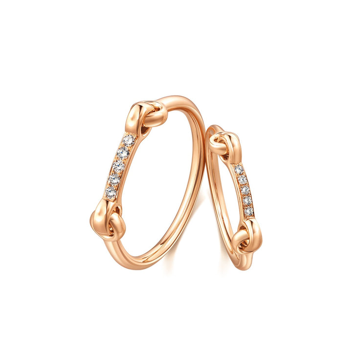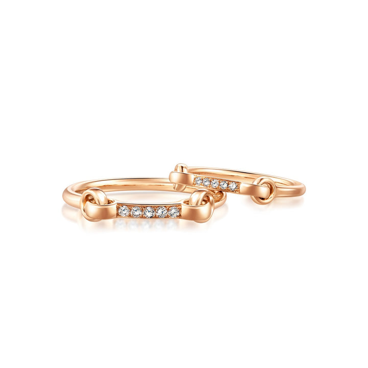 This 18K Rose Gold Diamond Ring by Chow Sang Sang combines the elegance of diamonds with a buckle-inspired design, symbolizing the unbreakable bond between lovers. The radiant diamonds and refined craftsmanship make this women's ring a timeless token of love and commitment.