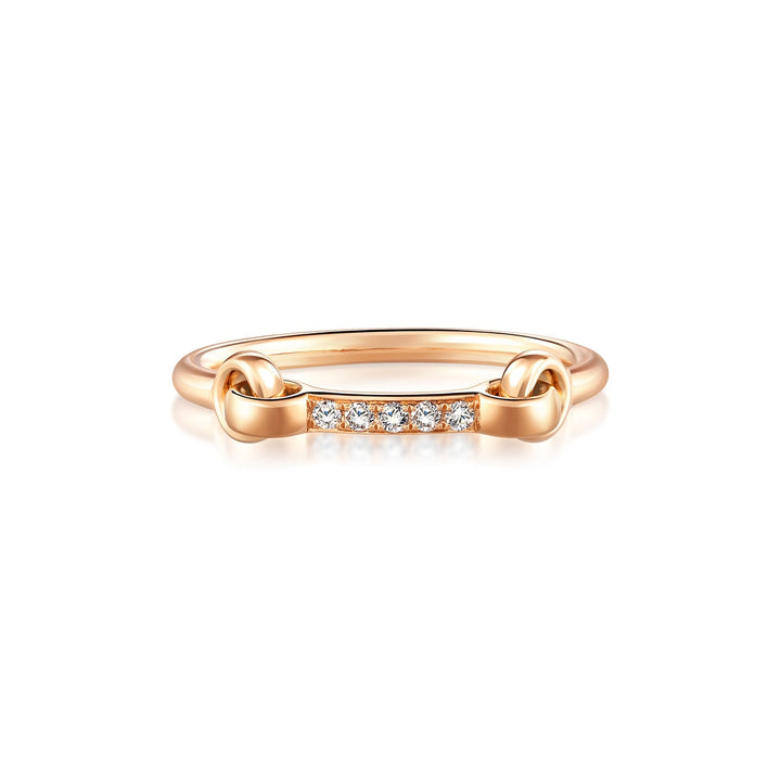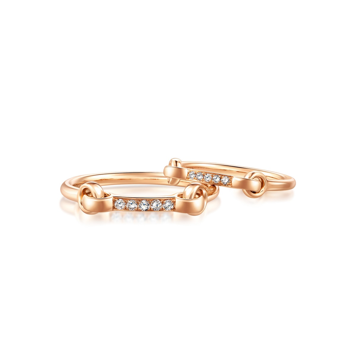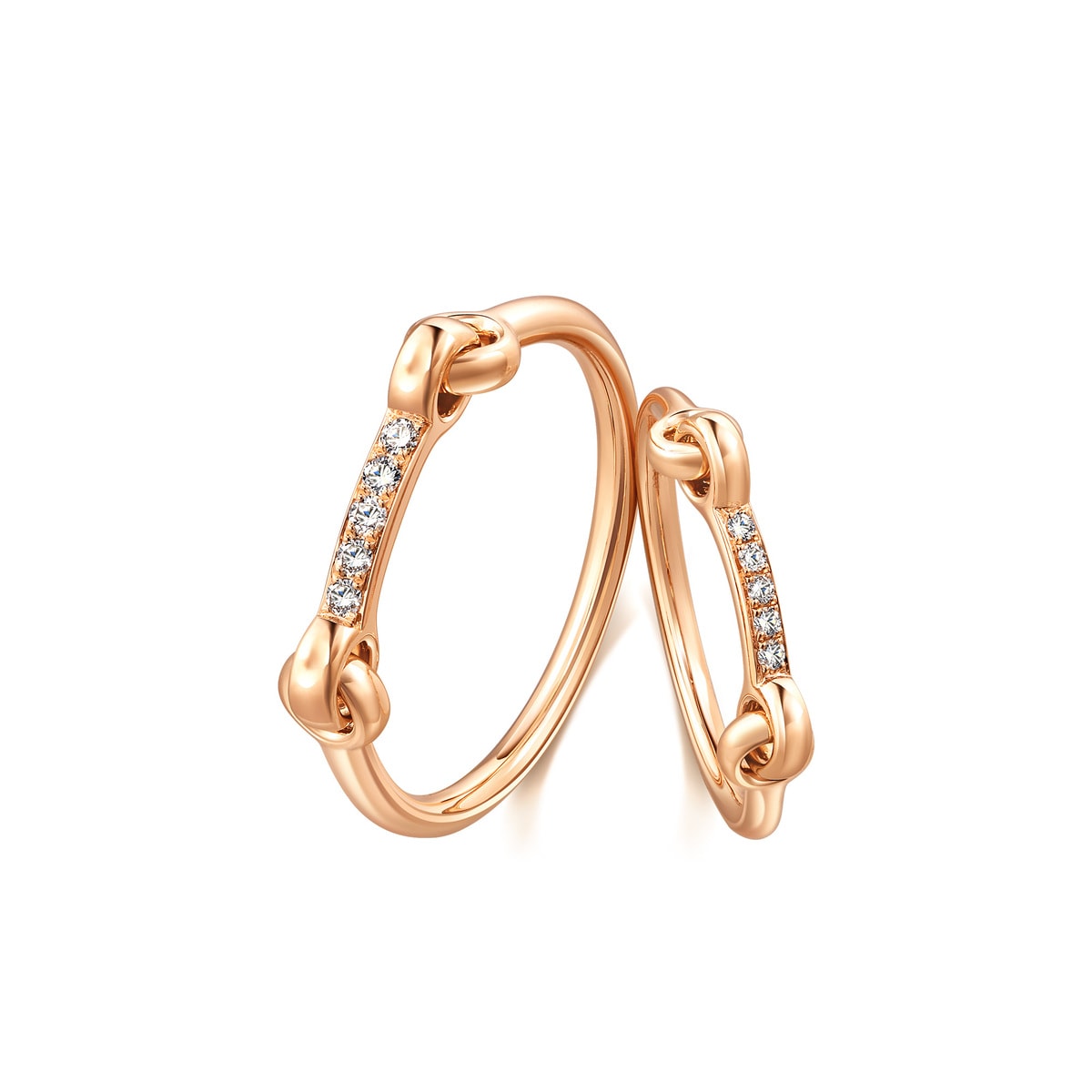 This 18K Rose Gold Diamond Ring by Chow Sang Sang is a powerful symbol of commitment, designed for men. The buckle-inspired design represents the inextricable link between lovers, with refined diamonds enhancing the meaningful aesthetic. This ring makes for a perfect romantic gift or wedding band.