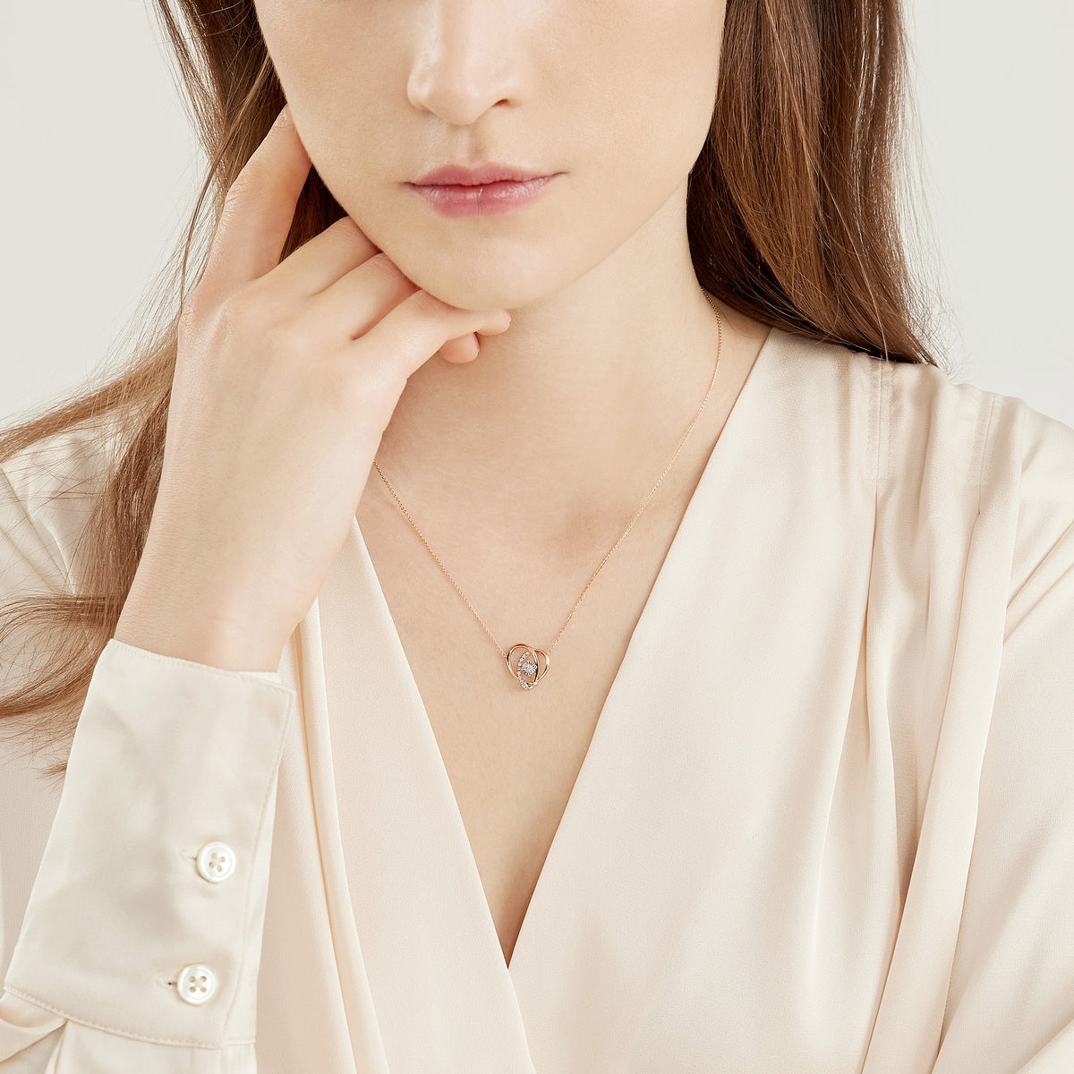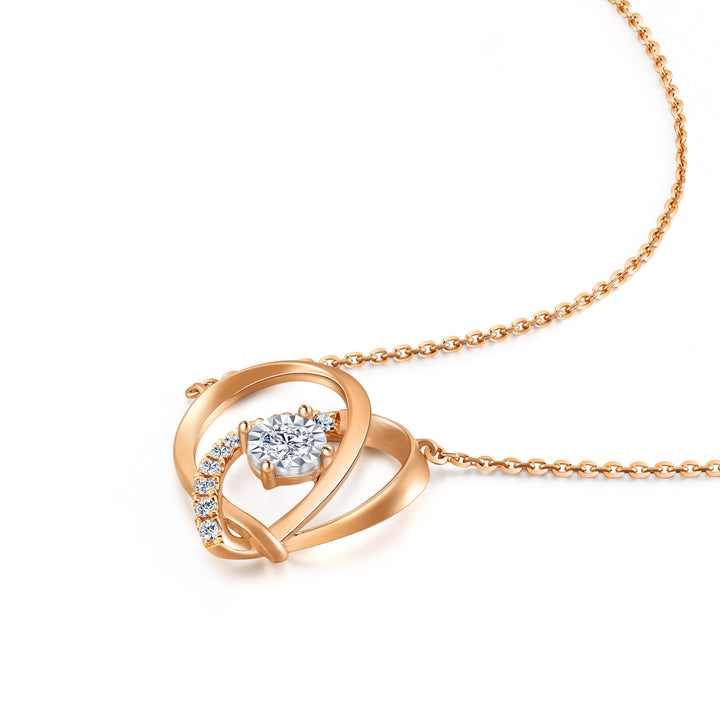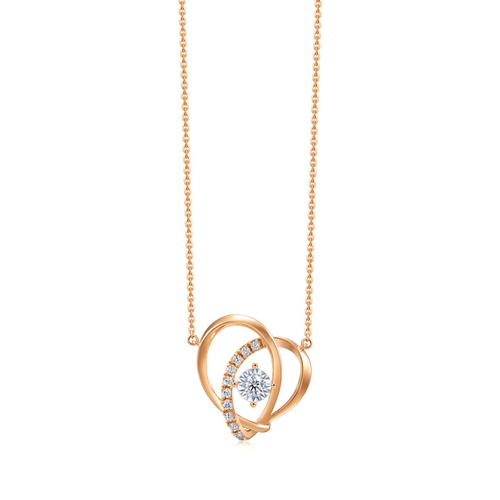 This ‘Love Knot’ 18K White & Red Gold Diamond Necklace by Chow Sang Sang symbolizes the union of destined lovers. The intricate love knot, woven from 18K red gold, forms a heart shape and is set with sparkling diamonds, making it a romantic accessory that brings elegance to any daily outfit.