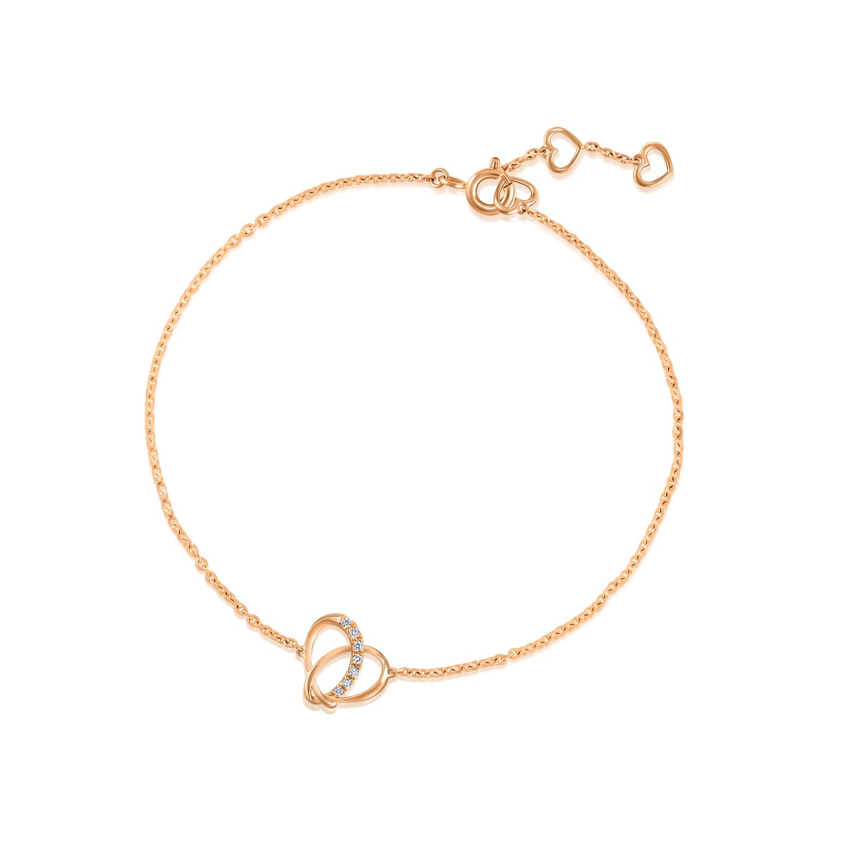 Crafted in 18K rose gold, featuring 0.02ct round brilliant diamonds. Bracelet measures 19cm, with diamond clarity SI1-SI2 and color grade G-H. Approximate weight is 0.037 tael (~1.385g).