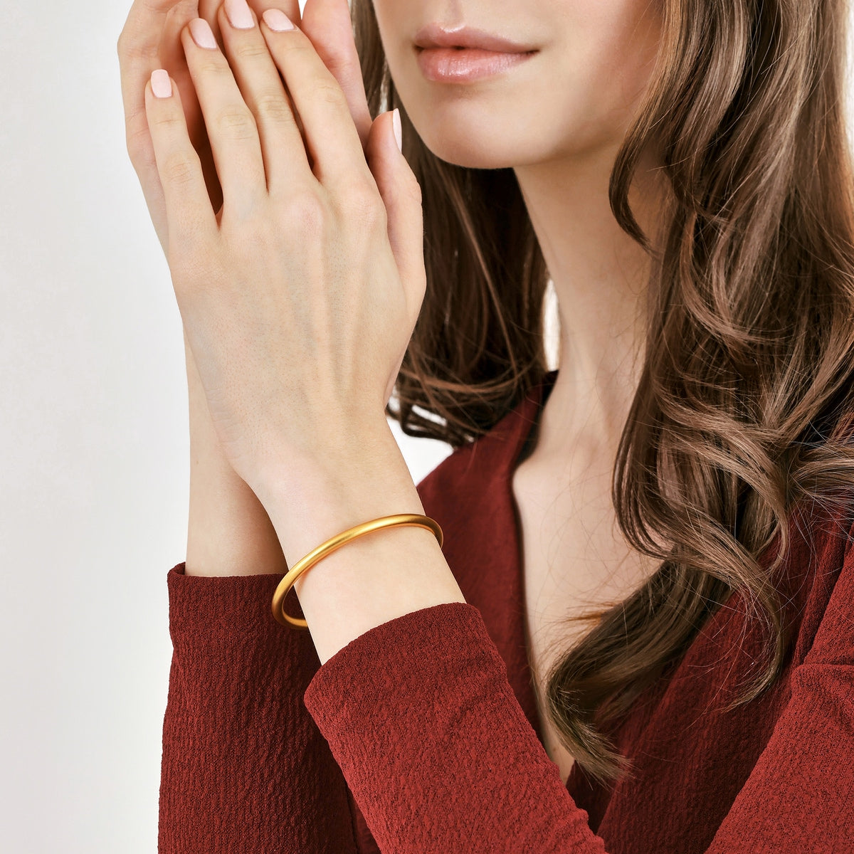 This ‘The Oriental’ 999.9 Gold Bangle by Chow Sang Sang exudes an air of Oriental charm, forged from precious ancient gold. The minimalistic design over delicate matte surfaces is engraved with bamboo and bat symbols, signifying blessings, peace, and good luck, making this a meaningful and auspicious accessory.