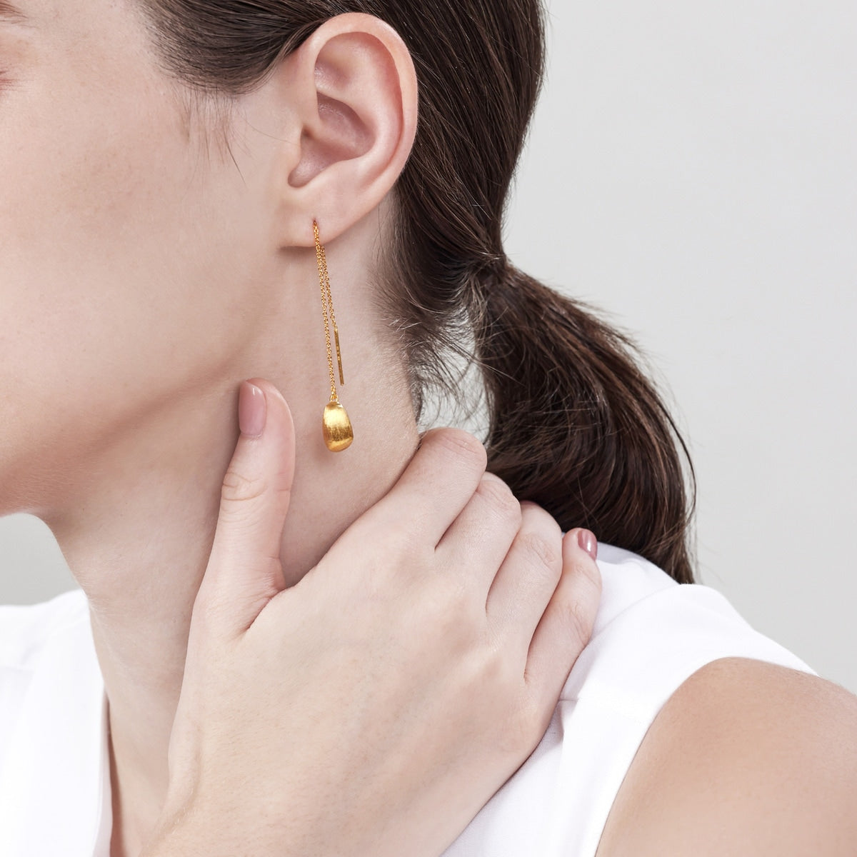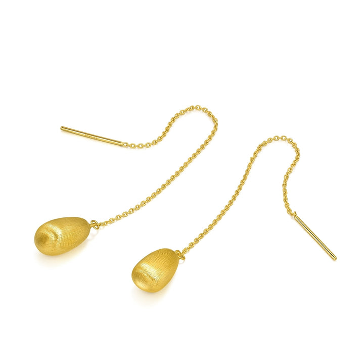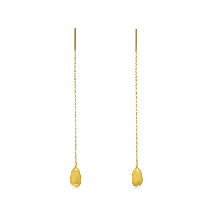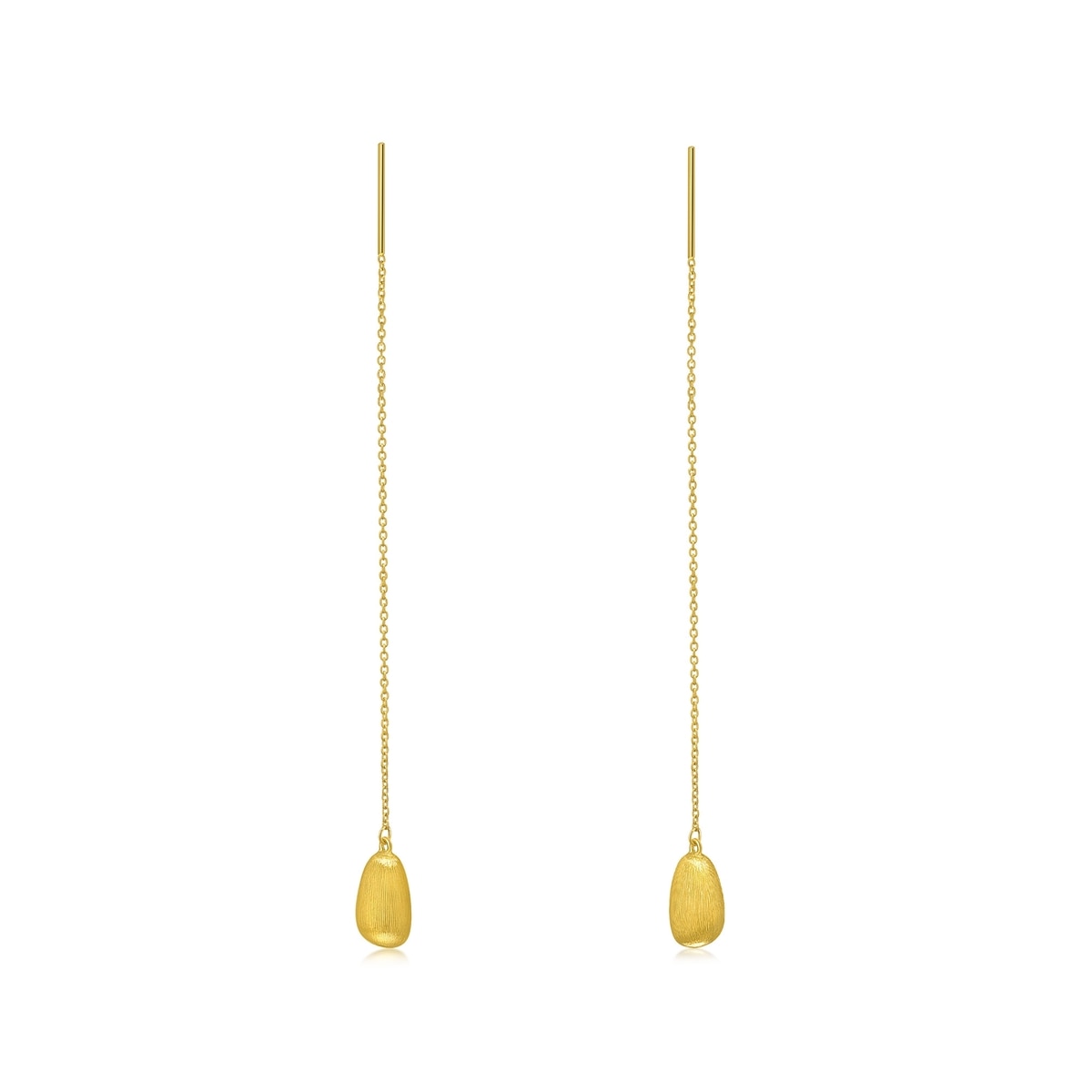 These 999 Gold Earrings by Chow Sang Sang feature a playful and unsymmetrical design, with gold decorations of varying sizes and spontaneous styles. The simple linear design adds a charming touch to modern, everyday fashion, making these earrings versatile for any occasion. Refined with electroforming and fine brushing techniques, they offer durability and a fashionable finish.