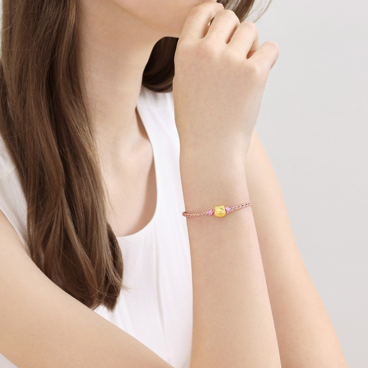 Crafted in 999 gold, bracelet measures 22cm. Approximate weight is 0.024 tael (~0.898g).