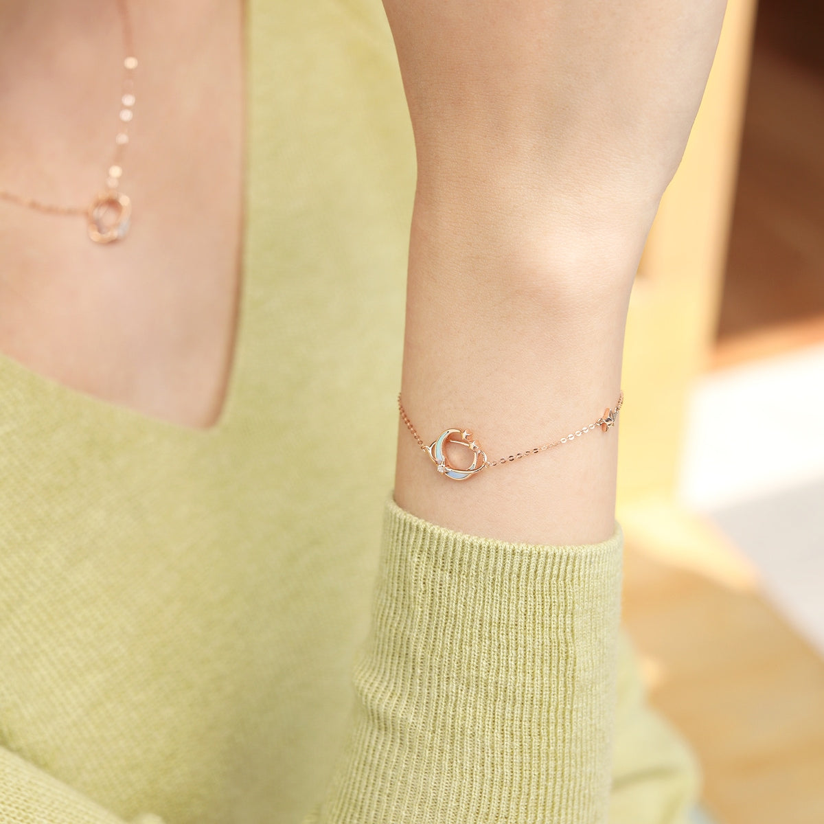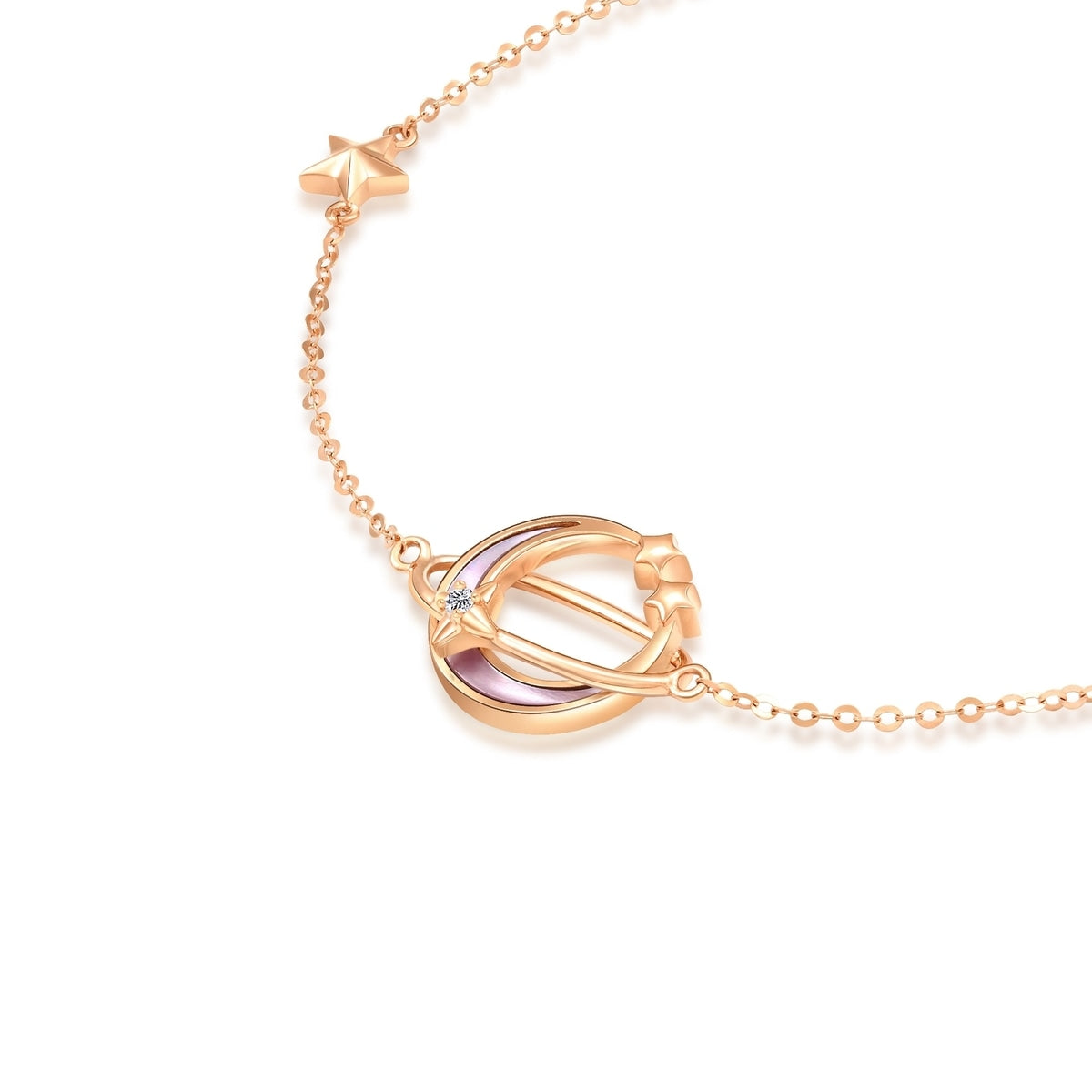 Crafted in 18K rose gold, bracelet measures 19cm. Approximate weight is 0.046 tael (~1.722g).