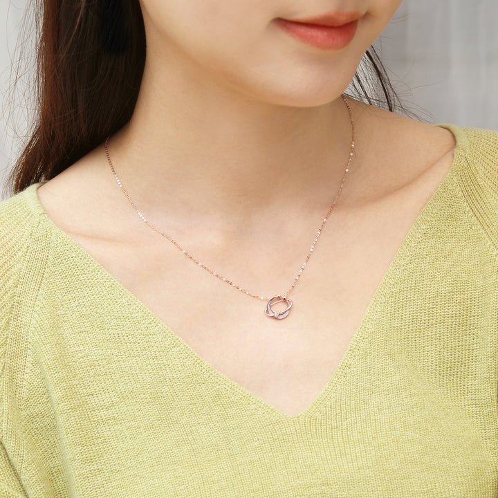 Crafted in 18K rose gold, necklace measures 47cm. Approximate weight is 0.048 tael (~1.797g).
