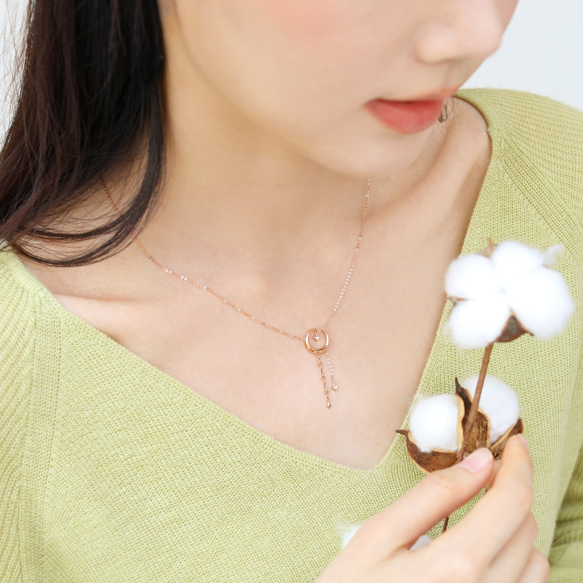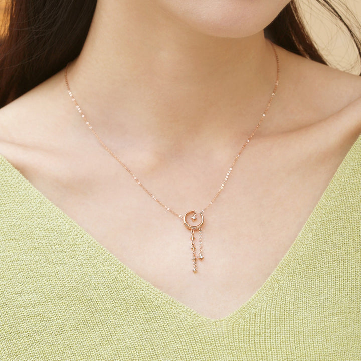 Crafted in 18K rose gold, necklace measures 47cm. Approximate weight is 0.065 tael (~2.433g).
