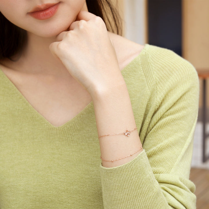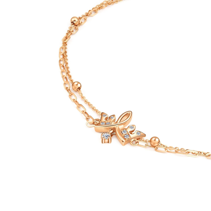 Crafted in 18K rose gold, bracelet measures 19cm. Approximate weight is 0.038 tael (~1.422g).
