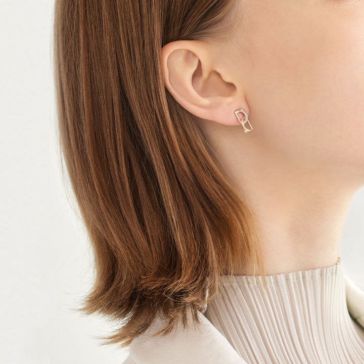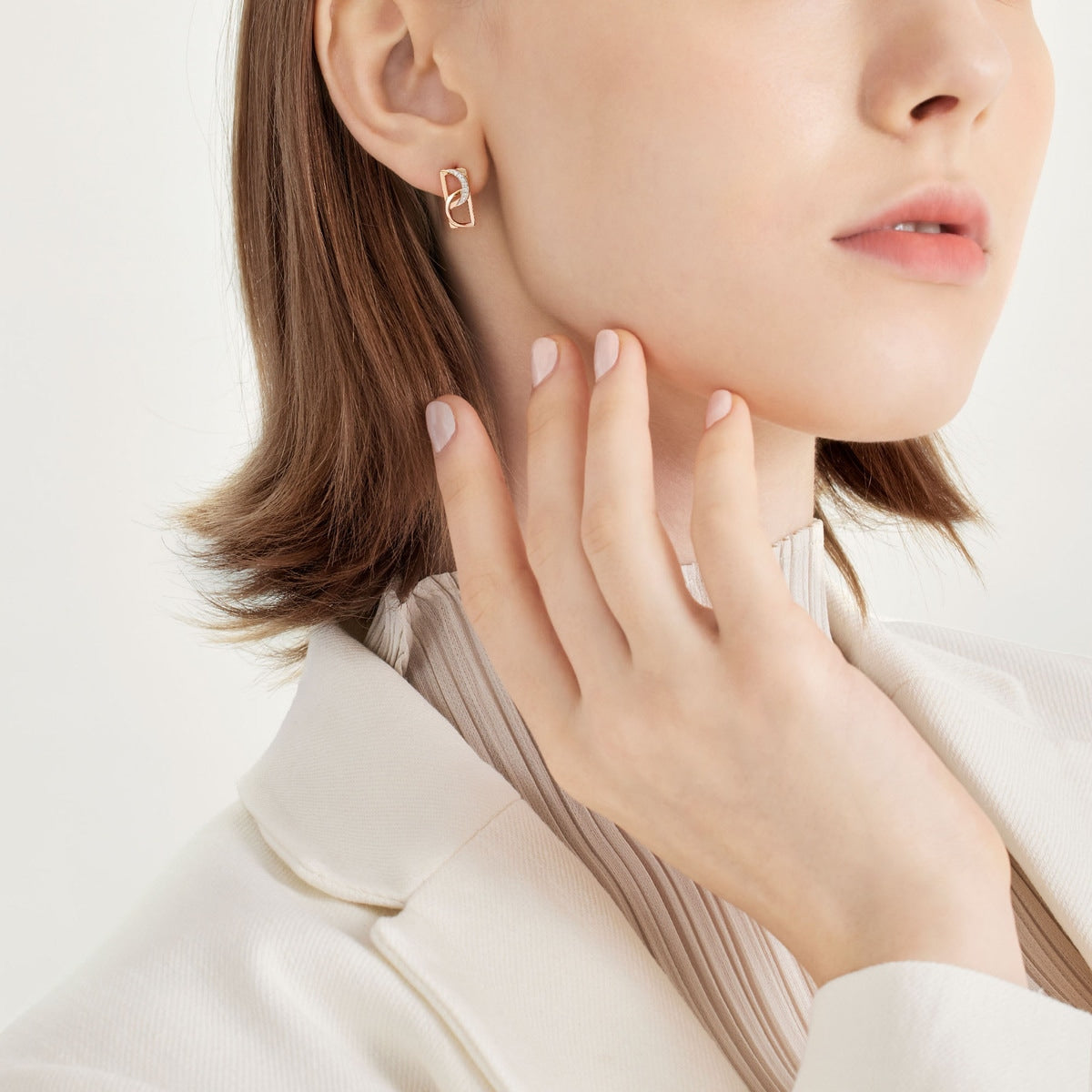 This ‘Promise’ 18K White & Red Gold Diamond Single Earring by Chow Sang Sang is designed to symbolize commitment, inspired by the letter ‘P’ in 'Promessa.' The interlocking Ps are embellished with pavé diamonds, creating a simple yet sophisticated piece. Ideal for everyday wear.