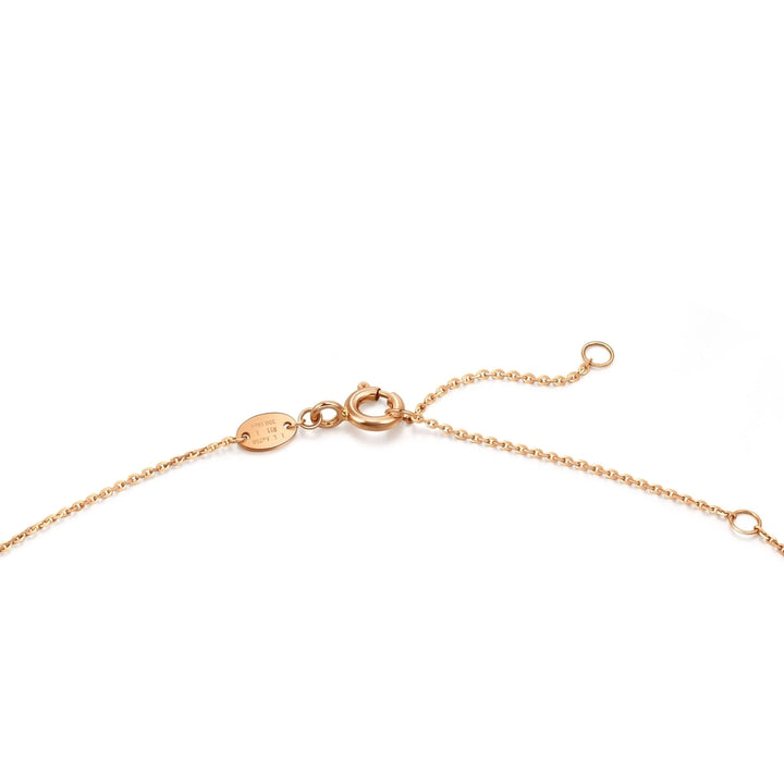 Crafted in 18K white and rose gold, featuring 0.07ct princess-cut and half-moon diamonds. Necklace measures 47cm, with diamond clarity VS1-VS2 and color grade G-H. Approximate weight is 0.070 tael (~2.62g).