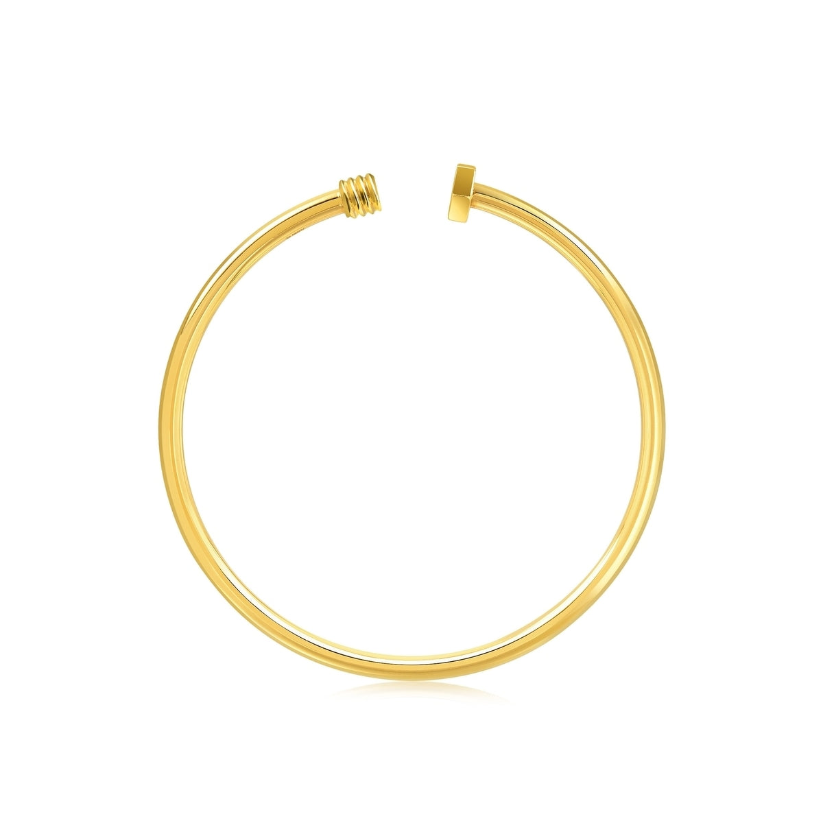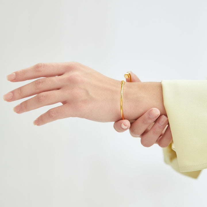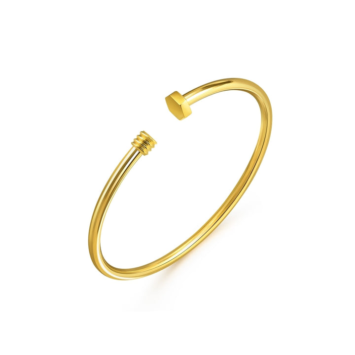 This 999 Gold Open Bangle by Chow Sang Sang is crafted with innovative 5G gold technique, enhancing the hardness of the gold for durability. Featuring a stylish screw design, this bangle adds a modern touch to fashionable daily wear, offering both charm and practicality.