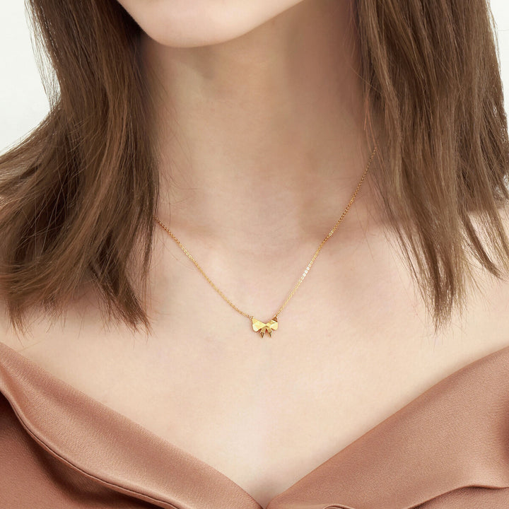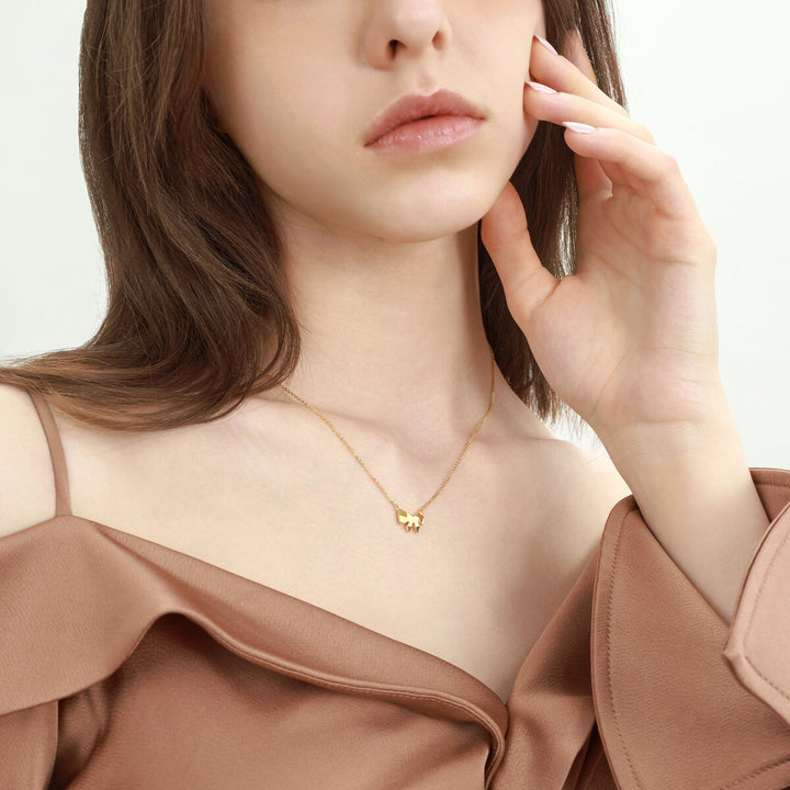 This 999 Gold Necklace by Chow Sang Sang is crafted using 5G smelting hard solid gold technique for enhanced hardness. The butterfly pendant, refined by geometric cutting, adds a touch of elegance to everyday wear, offering a simple yet refined design.