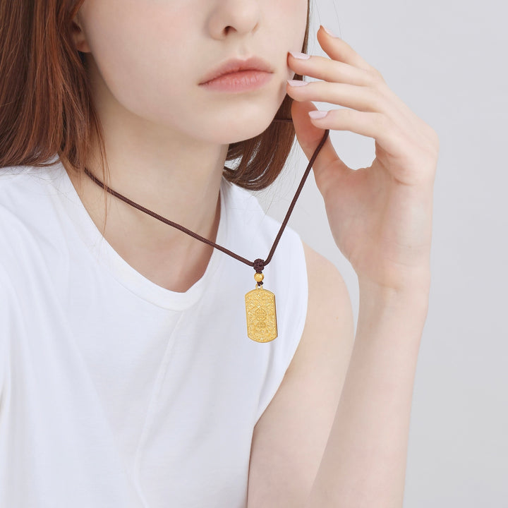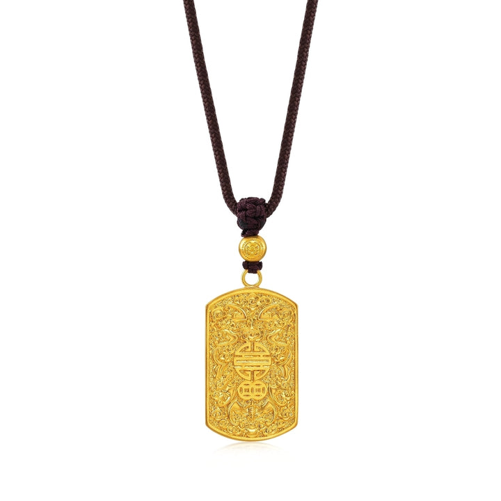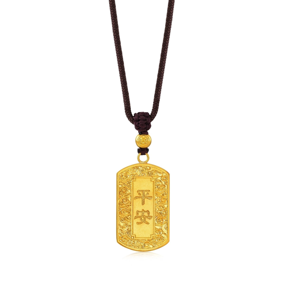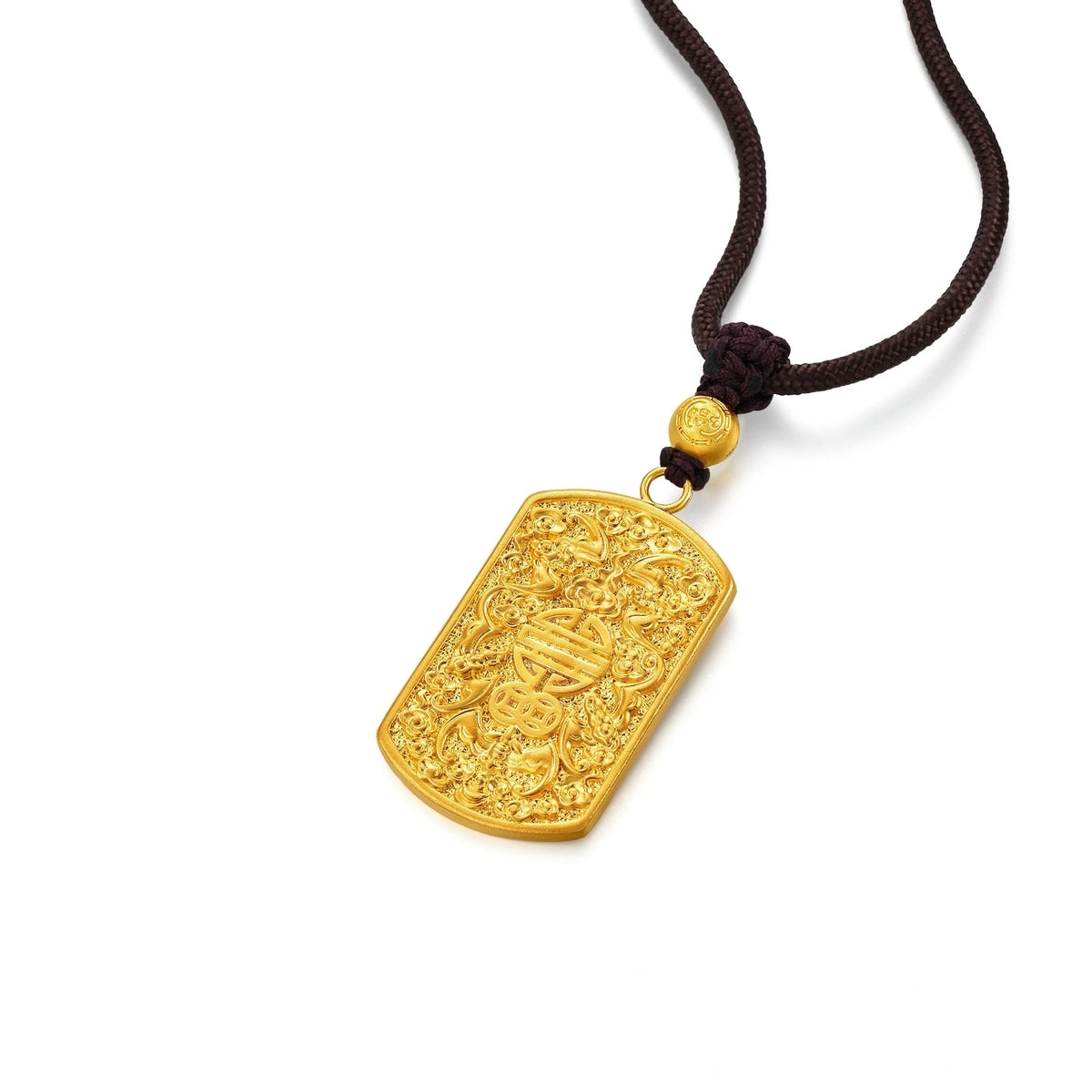 This ‘The Oriental’ 999.9 Gold Necklace by Chow Sang Sang is inspired by ancient Chinese symbols of luck, wealth, and happiness. The necklace features intricate designs of bats, coins, and auspicious clouds along with the Chinese character for longevity, making it a meaningful and elegant piece.
