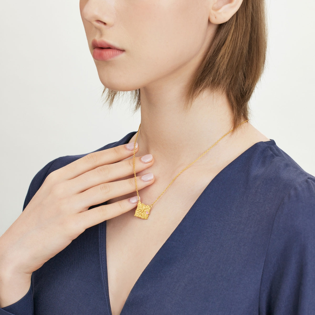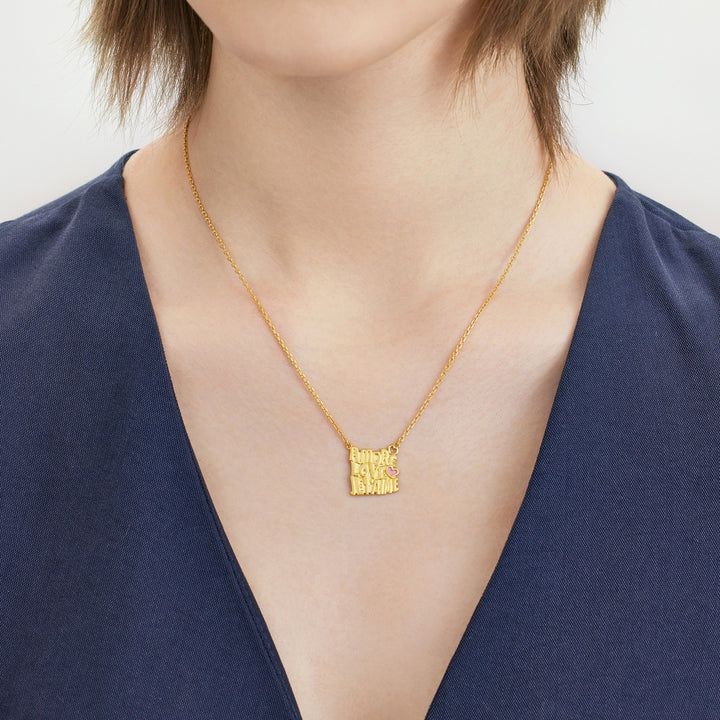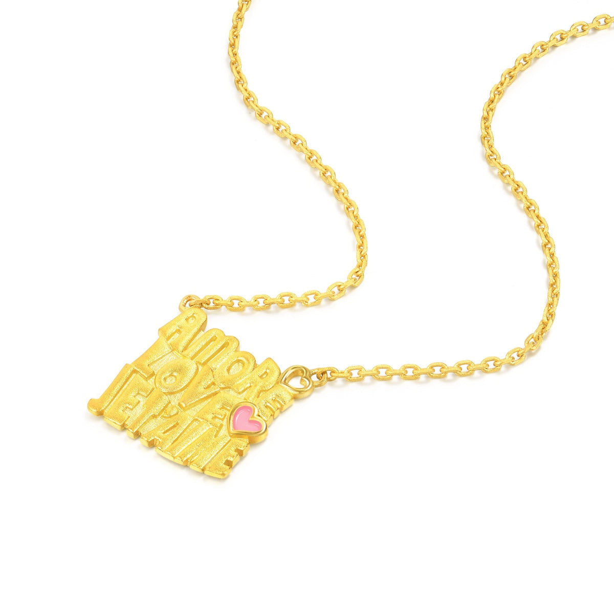 This 999.9 Gold Necklace by Chow Sang Sang expresses love in three languages—Italian, English, and French—interpreted in a 3D font. The word ‘love’ is enhanced by colorful coating, making this necklace a bold and heartfelt statement piece.