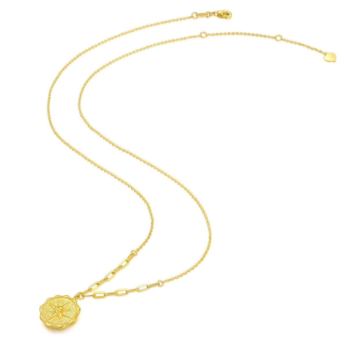 This '999 Gold Necklace' by Chow Sang Sang features an octagonal star engraving, crafted using the 5G smelting hard solid gold technique for enhanced durability. The necklace’s two-styled chains add a modern flair, making it a stylish piece that elevates daily wear.
