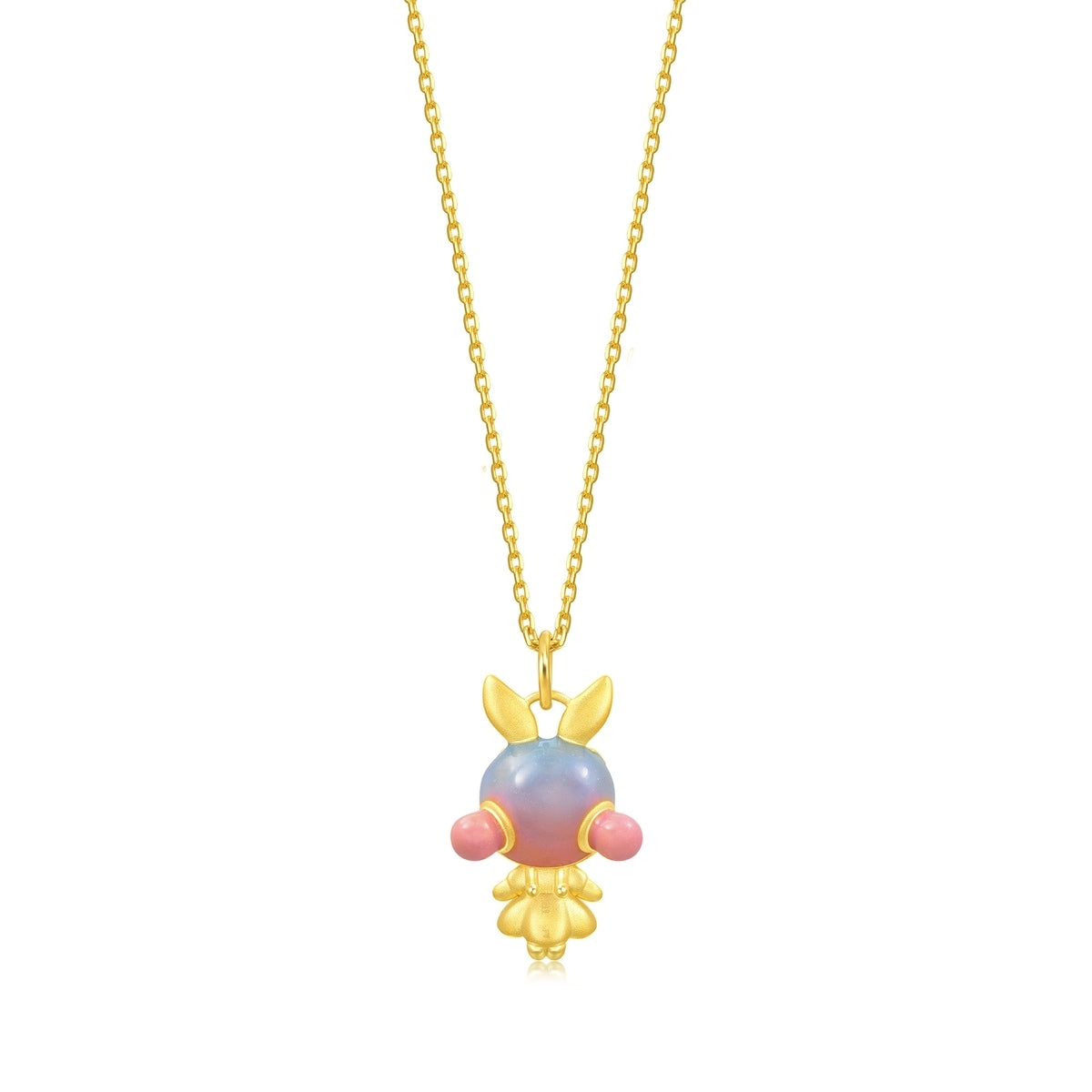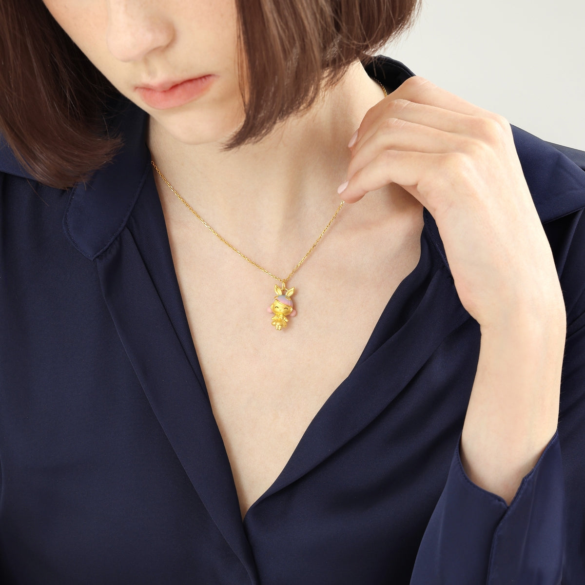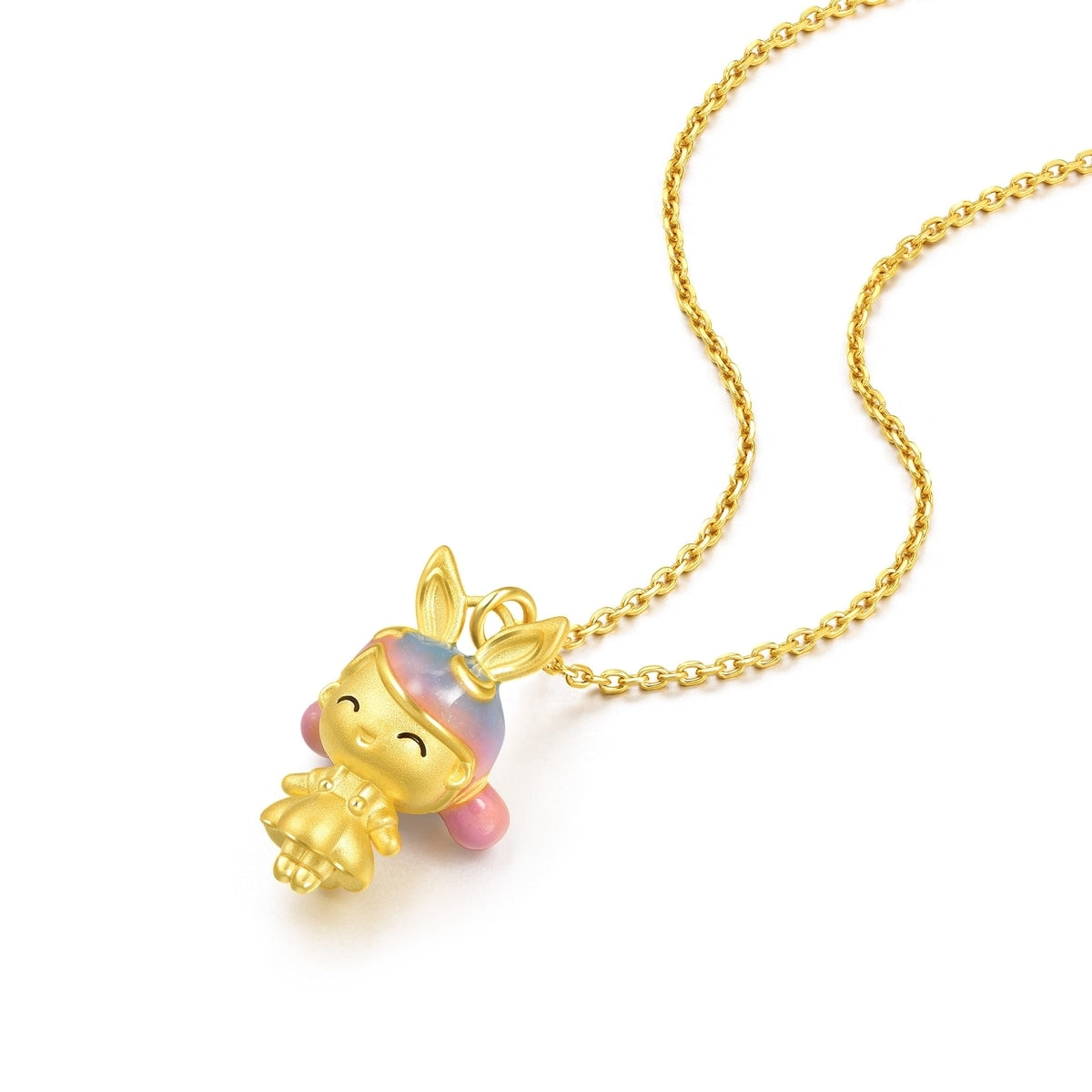 This 999 Gold Rabbit Pendant by Chow Sang Sang is marked by color coating, adding an extra layer of playfulness and refined sweetness to the design. The rabbit motif brings a sense of joy and charm, making it a delightful accessory for any collection.