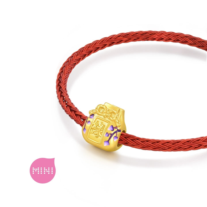 This Blessings 999 Gold Amulet Charm by Chow Sang Sang is a mini Omamori designed as an amulet for love. With color coating to resemble the elegance of wisteria, this charm embodies blessings for romantic relationships, while wisteria signifies longing and affection.