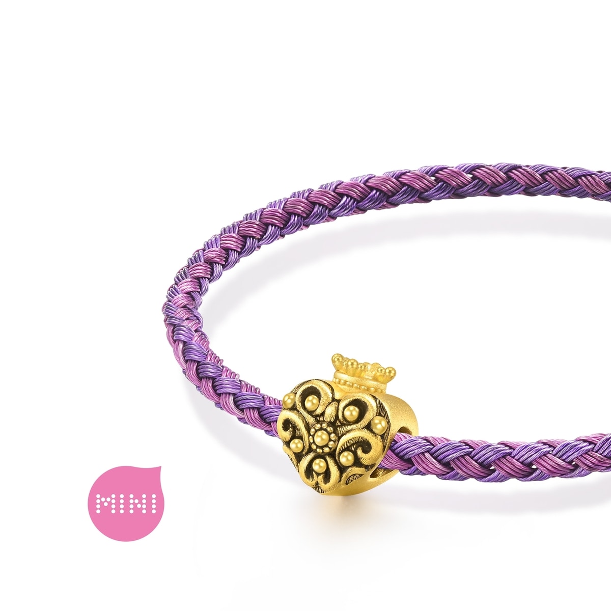 This The Art of Romance 999 Gold Charm by Chow Sang Sang features a crowned heart design, inspired by 18th-century heart-shaped lockets used to keep beloved memories close. The charm’s unique design takes inspiration from a silver-gilt scent case in the V&A collection, adding a touch of romantic history to your look.