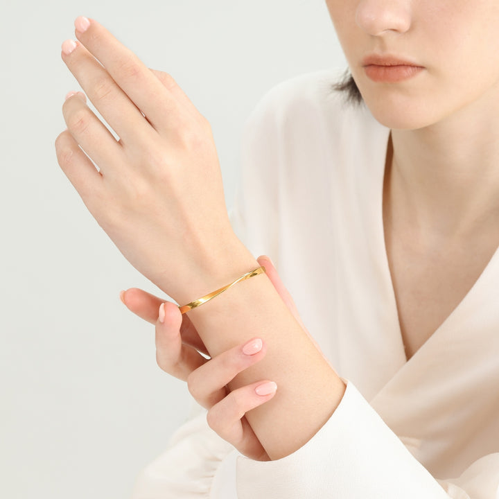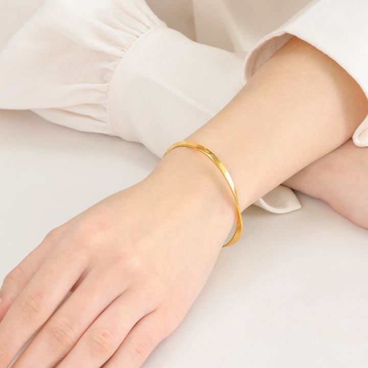 This 999 Gold Bangle by Chow Sang Sang features a unique 'Möbius strip' structure, blending clean and sleek lines that give it a modern yet timeless aesthetic. The bangle incorporates the innovative 5G gold technique, making it a stylish piece perfect for everyday wear, adding a fashionable touch to any look.