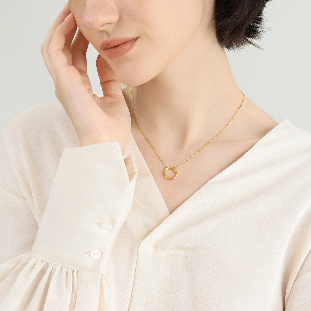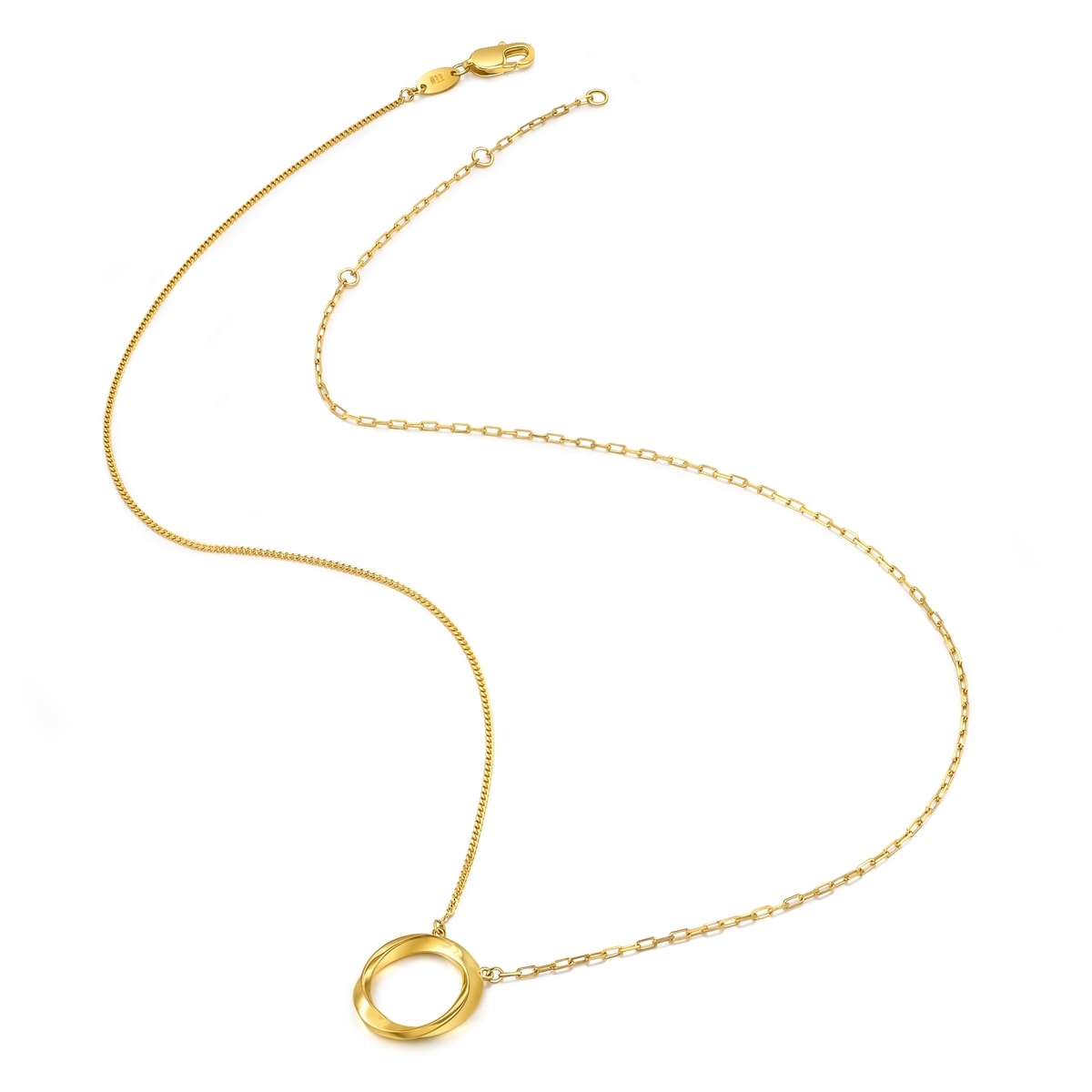 This 999 Gold Necklace by Chow Sang Sang features a sleek 'Möbius strip' structure, incorporating the 5G gold technique for a modern and fashionable touch. Its clean lines make it a perfect everyday accessory to elevate any outfit.