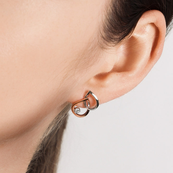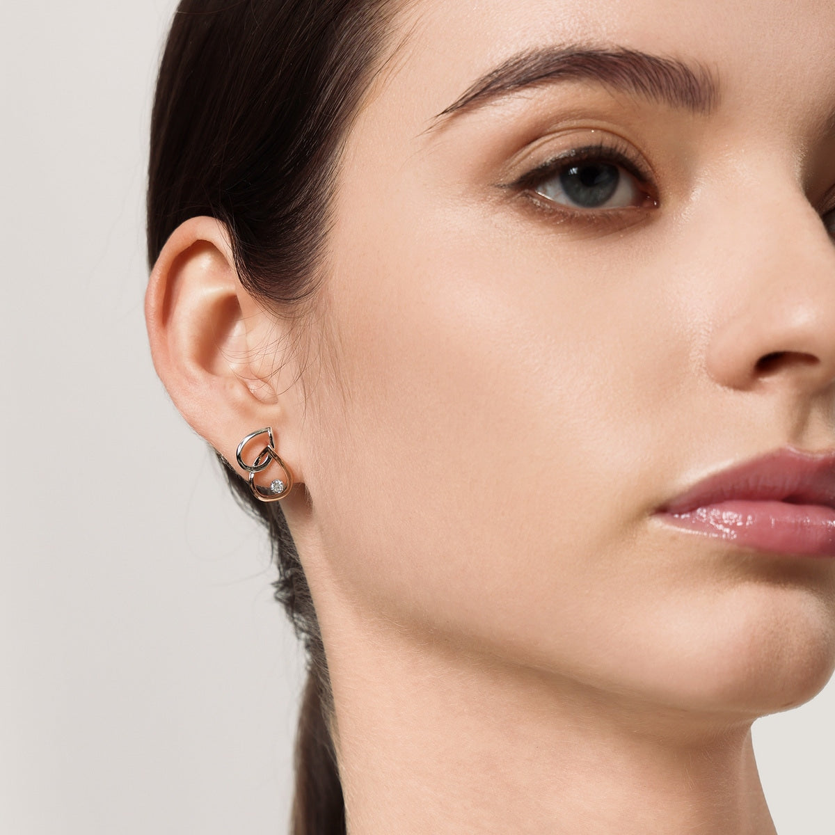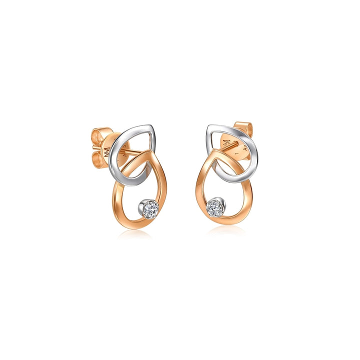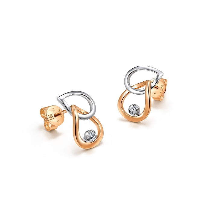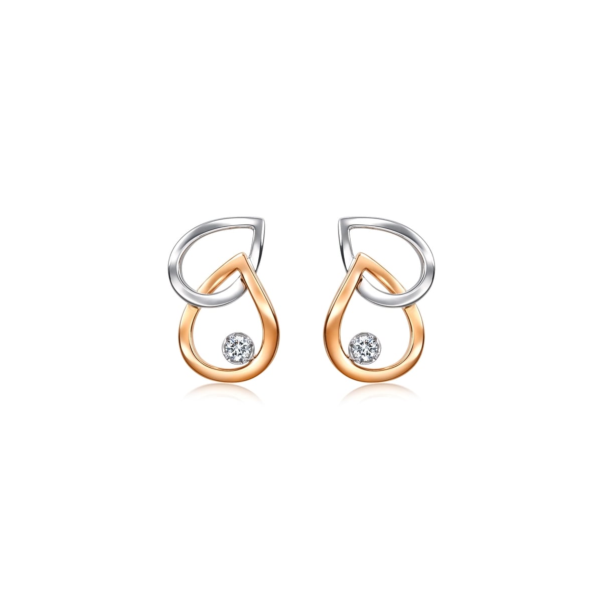 These Form 18K White & Red Gold Diamond Earrings by Chow Sang Sang feature a modern design with fluid curves, creating a refined yet contemporary look. The sparkling diamonds add a touch of elegance, making them perfect for any occasion.
