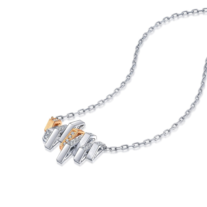 This 'M' 18K White & Red Gold Diamond Necklace by Chow Sang Sang combines the elegance of white and rose gold with a brilliant diamond. The simple yet striking design is ideal for showcasing timeless sophistication.