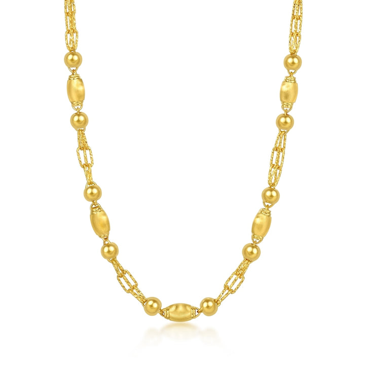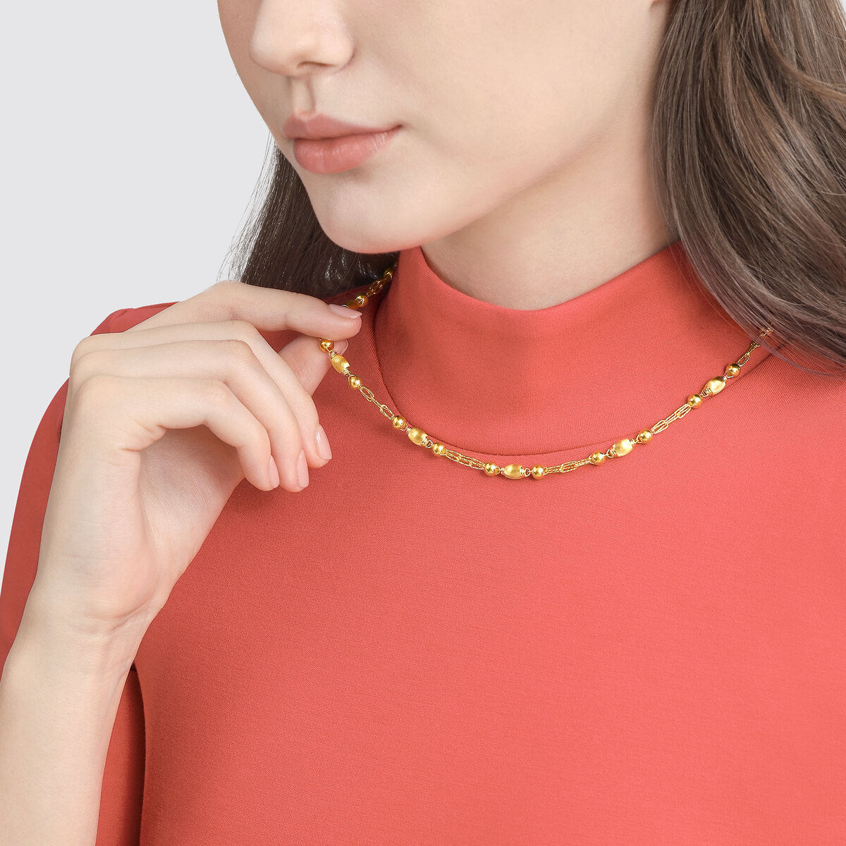 This 999.9 Gold Necklace by Chow Sang Sang combines glossy round beads with oval-shaped links and a chic clasp, making it a stylish yet sophisticated addition to everyday wear. It elevates any look with its rich gold finish.