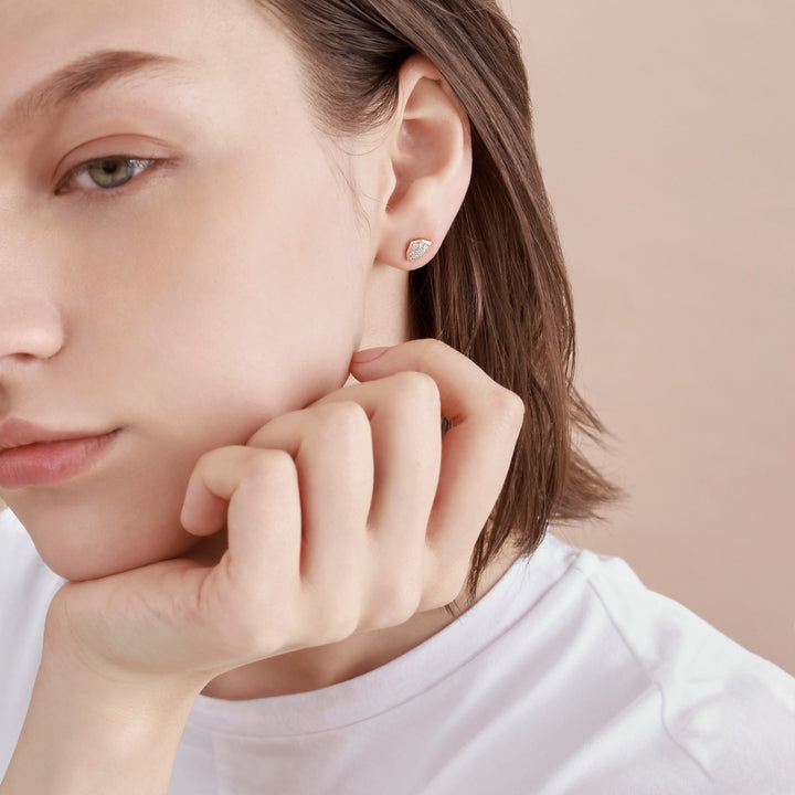 This Harmony 18K Rose Gold Diamond Single Earring by Chow Sang Sang is a delicate piece, adorned with dazzling diamonds. The unique cut highlights the artisanship and craftsmanship behind this earring, showcasing the purest beauty in its simplicity.