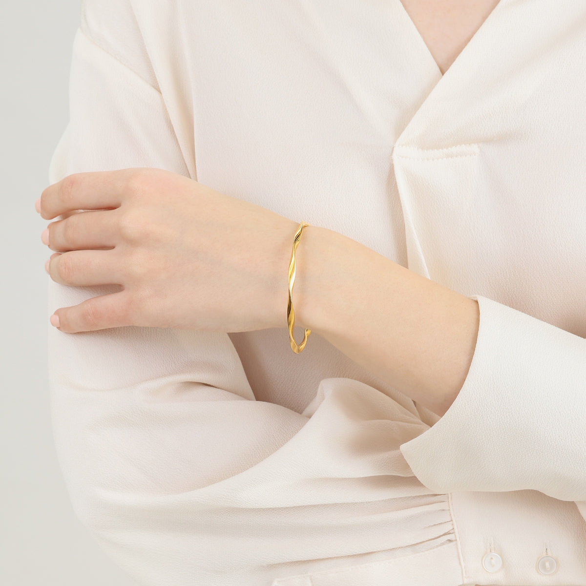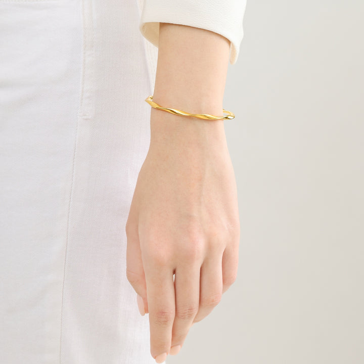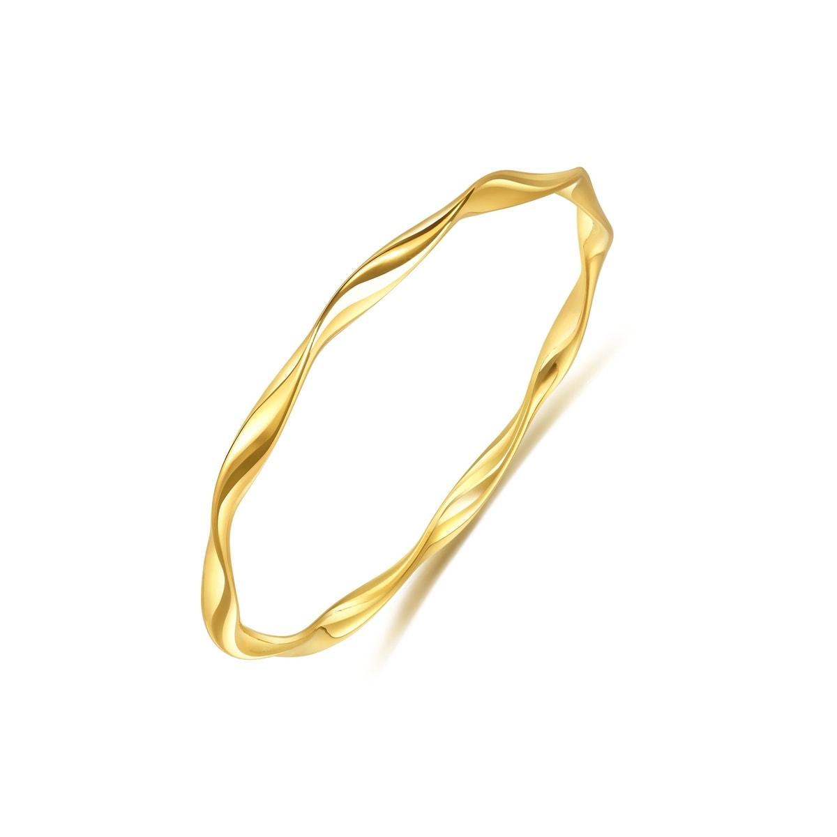 This 999 Gold Bangle by Chow Sang Sang is inspired by the Möbius loop, symbolizing loyal and endless love. The solid gold bangle is crafted with 5G smelting hard gold technology for doubled hardness, giving it both elegance and durability.