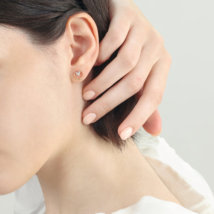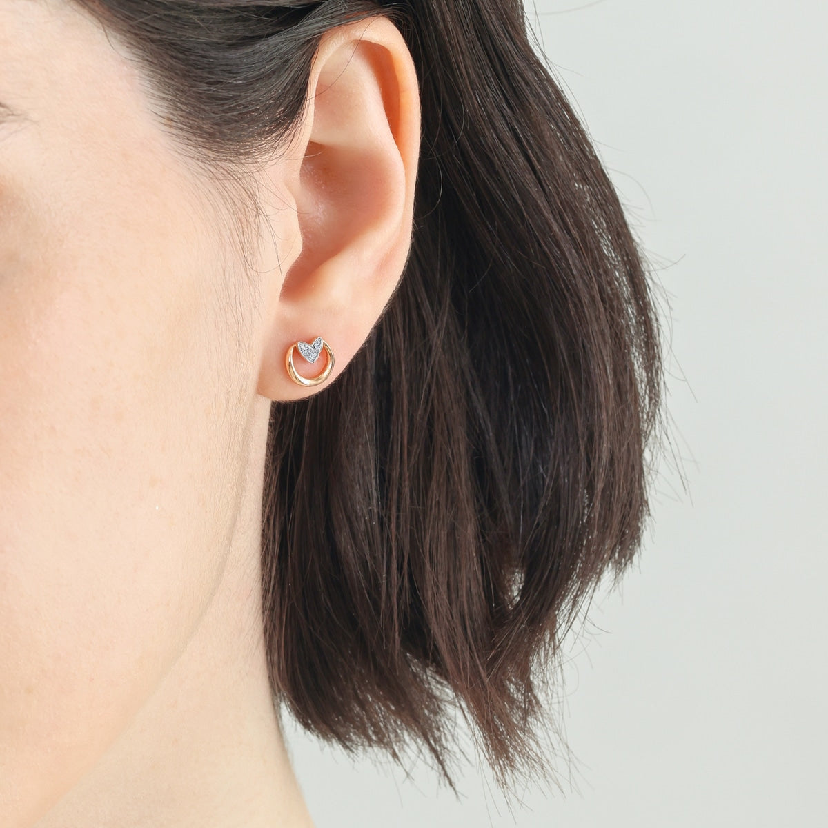 Handcrafted in 18K white and rose gold, featuring 0.01ct round brilliant diamonds. Diamonds are SI1-SI2 clarity, G-H color grade, and the earring weighs approximately 0.029 tael (~1.085g).