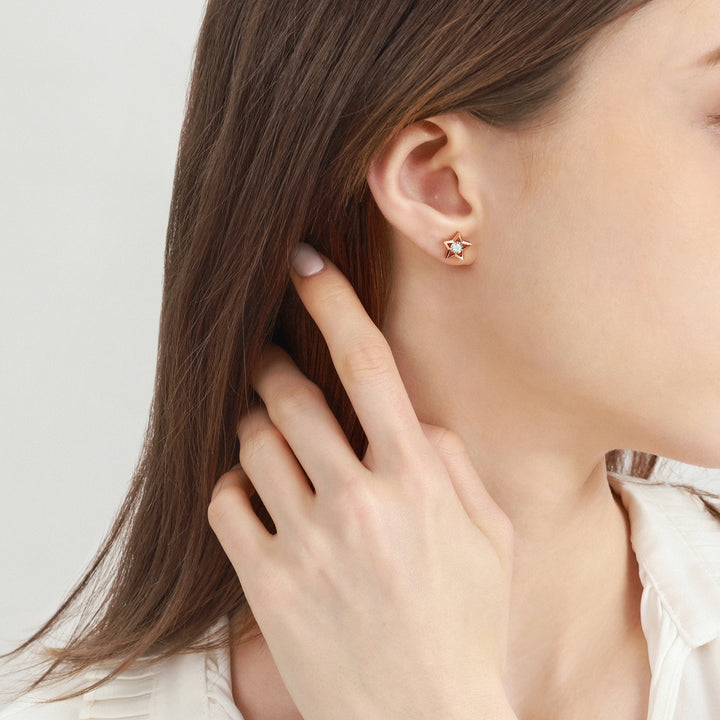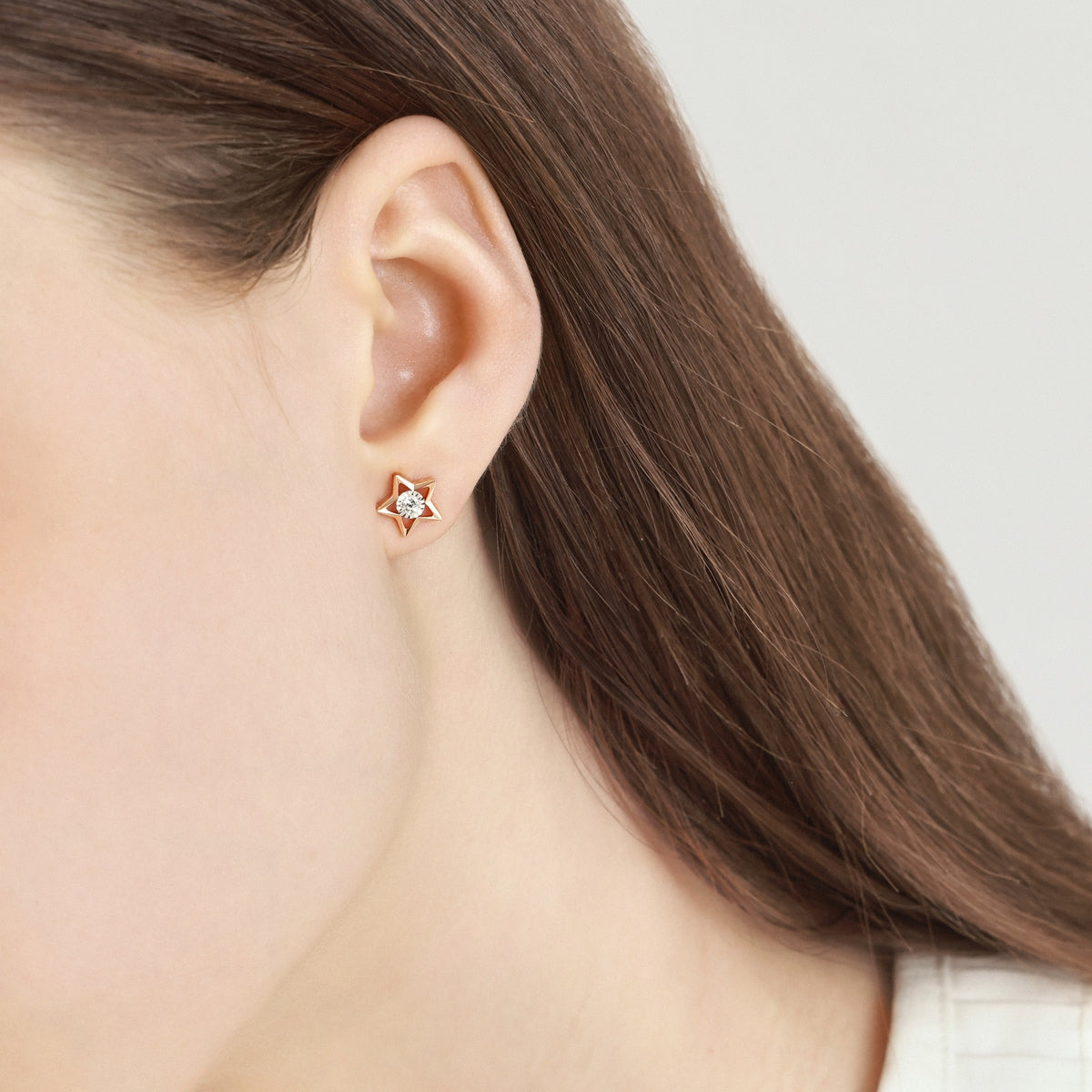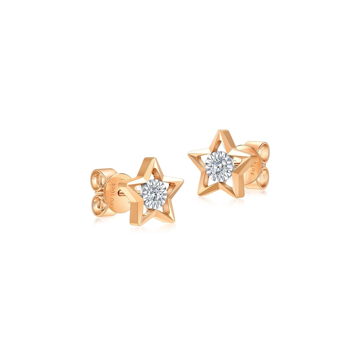 These Fantasy 18K White & Red Gold Diamond Earrings by Chow Sang Sang showcase a patented design with a stunning combination of engraving and embedding techniques. The star-shaped die-cut frame is accented by diamonds, creating a radiant sparkle.