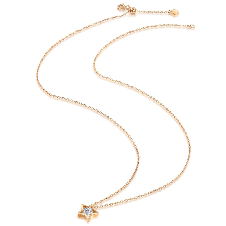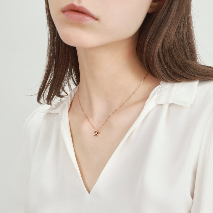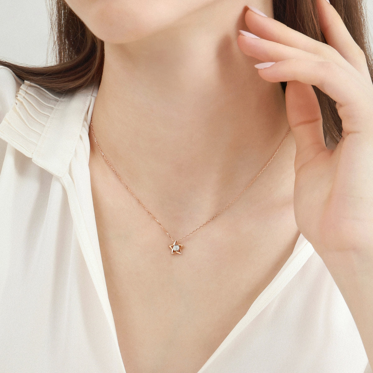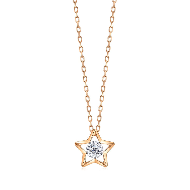 This Fantasy 18K White & Red Gold Diamond Necklace by Chow Sang Sang features a beautiful star-shaped die-cut frame, enhanced by the seamless engraving and embedding technique. The diamonds add an elegant sparkle, making it a perfect accessory for any occasion.