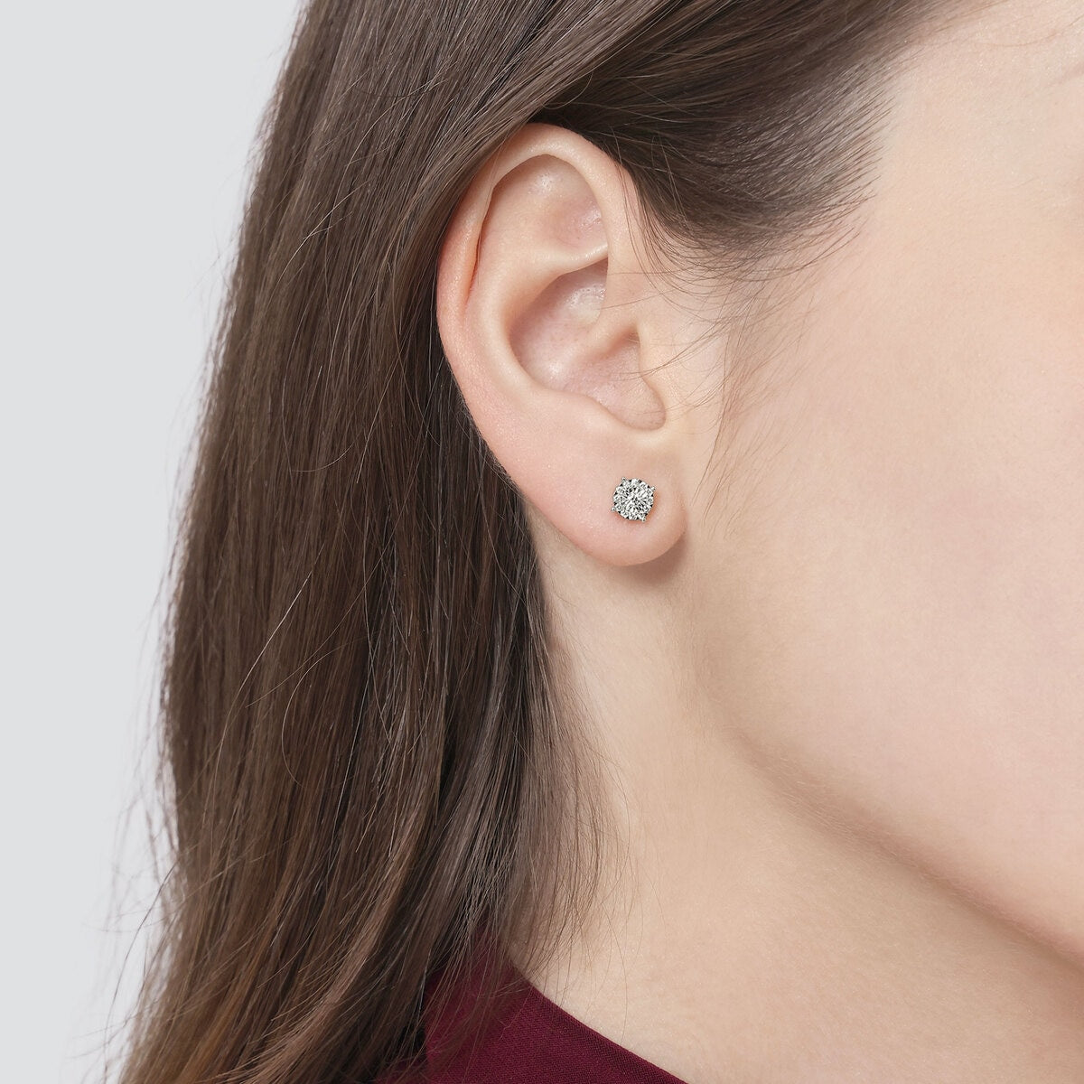 Handcrafted in 18K white gold, featuring 0.08ct round brilliant diamonds. Diamonds are SI1-SI2 clarity, G-H color grade, and the earrings weigh approximately 0.047 tael (~1.759g).