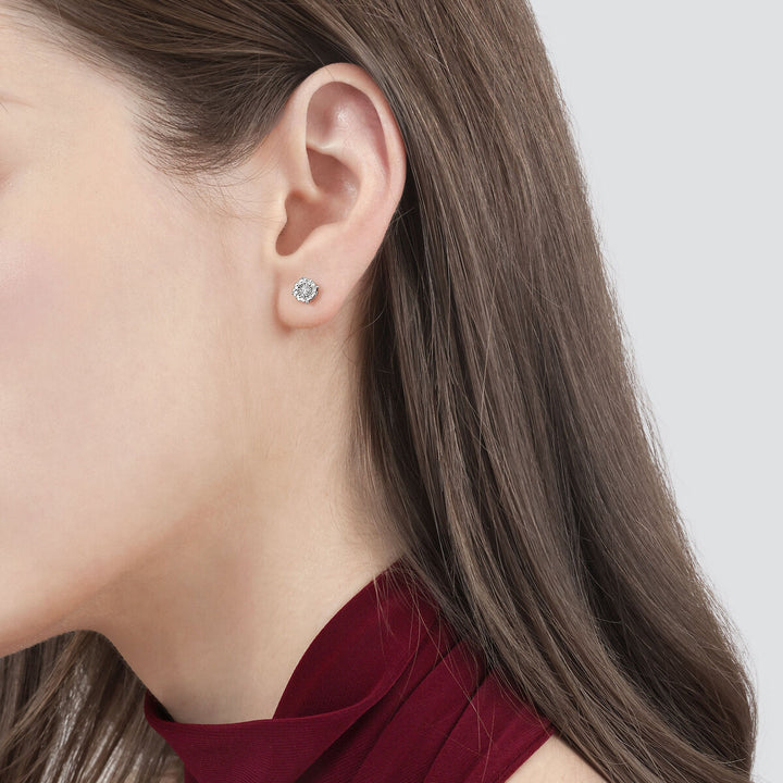 These Fantasy 18K White Gold Diamond Earrings by Chow Sang Sang are crafted using a dazzling carving technique, with both the center and outer circles adorned with sparkling diamonds. These earrings add a sophisticated touch of urban femininity to everyday style.