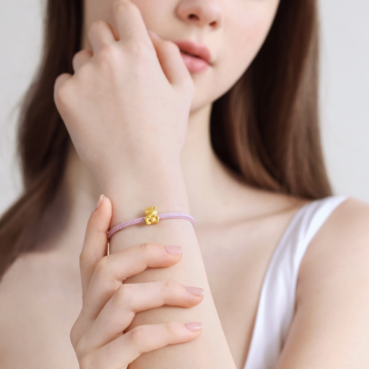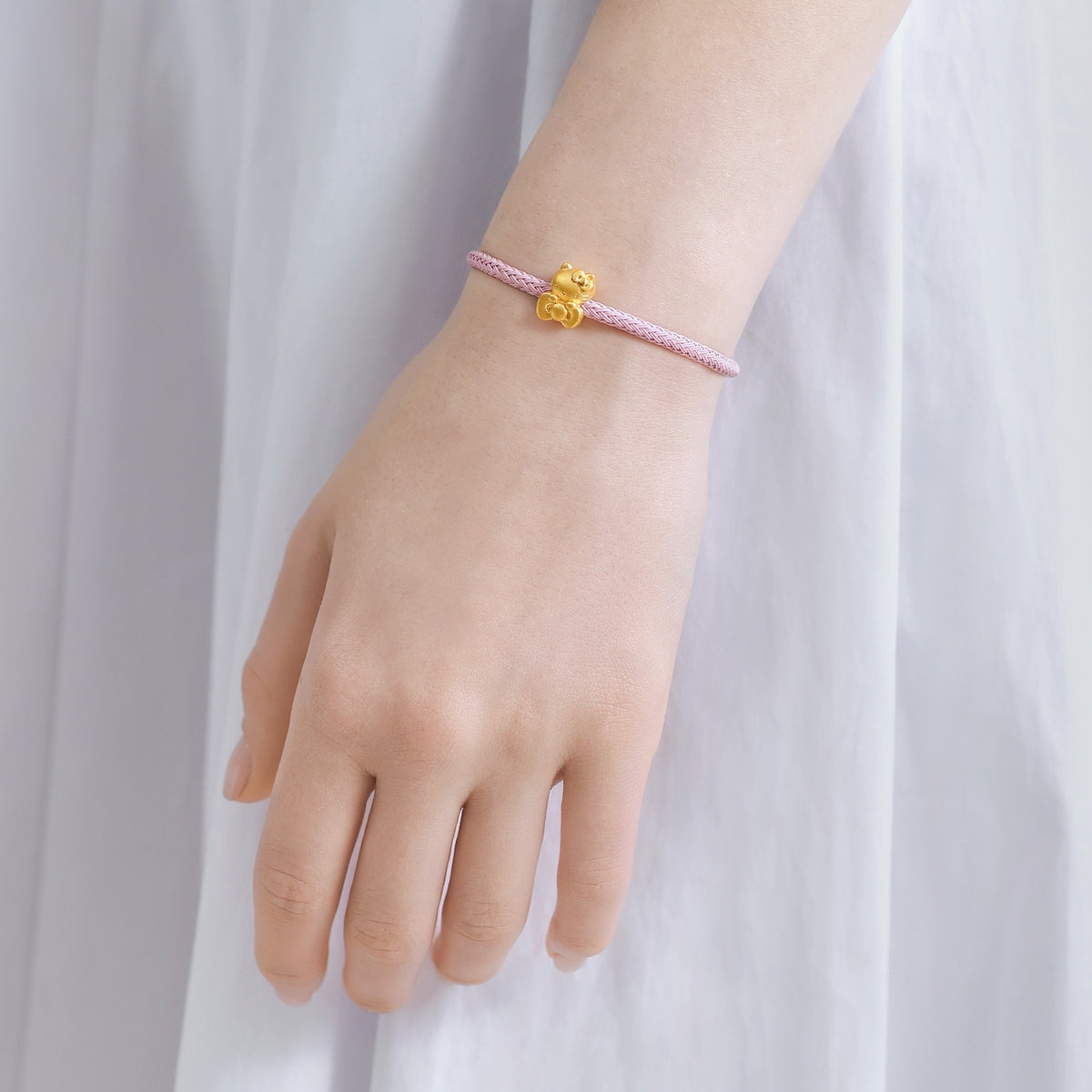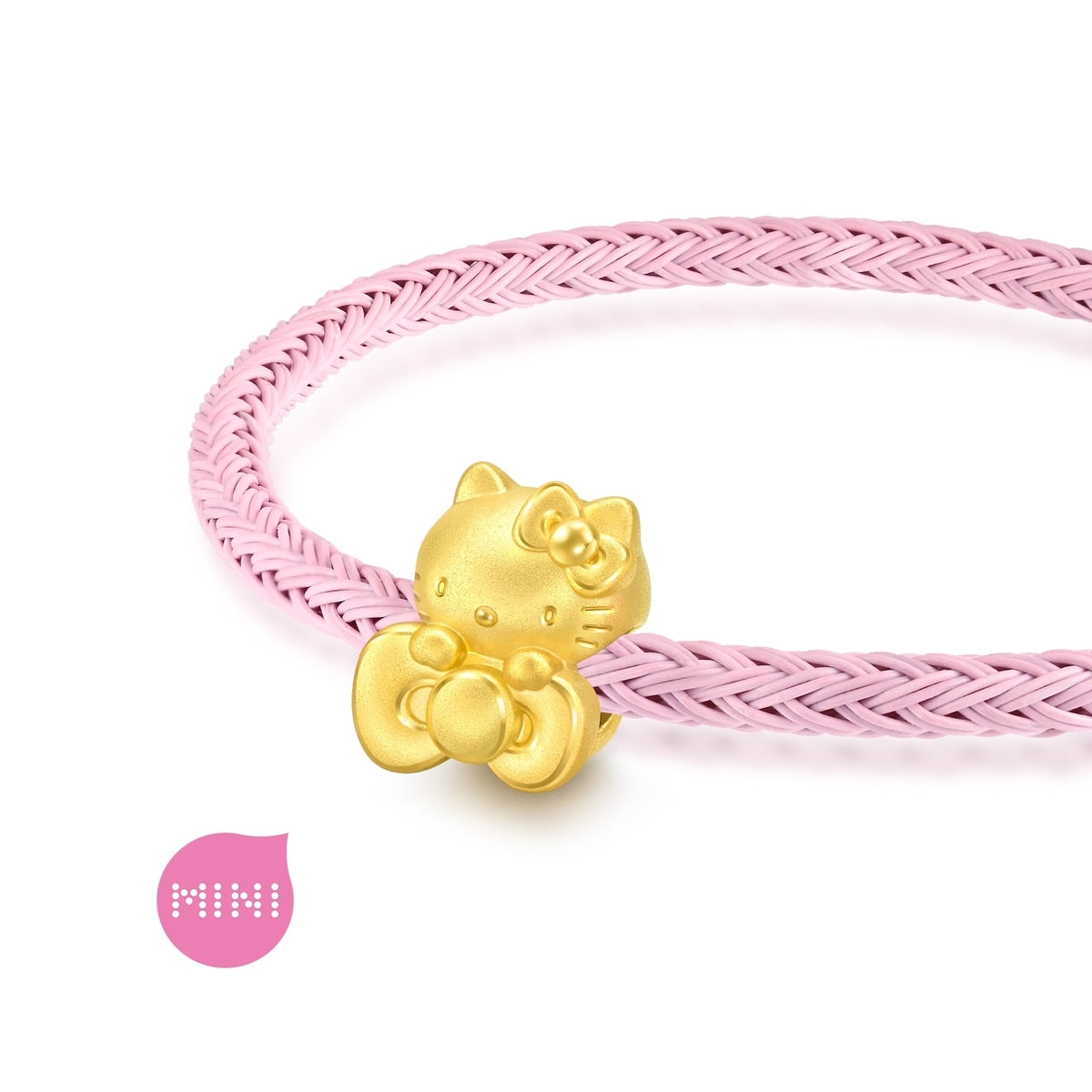 This Hello Kitty 999 Gold Charm by Chow Sang Sang showcases the iconic Hello Kitty bow. Enhanced with sandblasting for a refined texture, this plump charm sends heartfelt love and blessings, making it a delightful accessory.