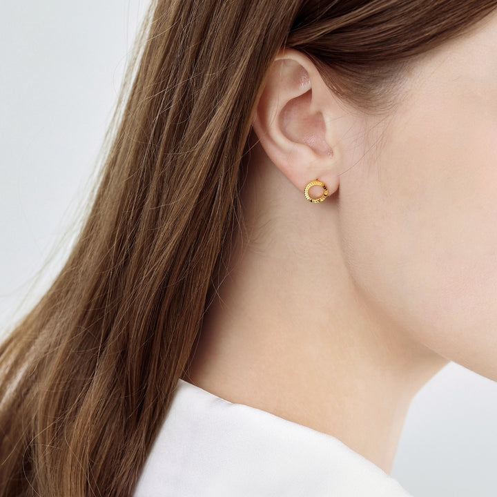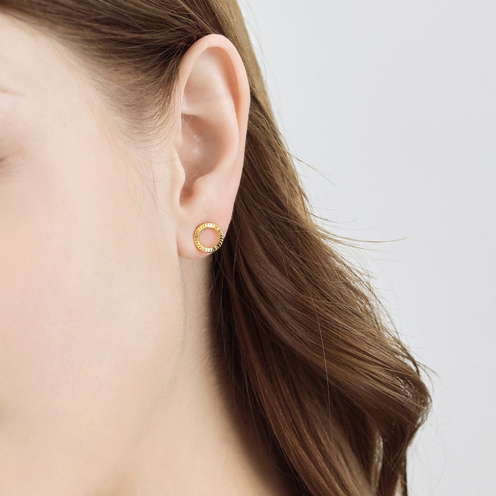 These 999 Gold Earrings by Chow Sang Sang elevate your style with their stunning layered design. Crafted with the 5G gold technique for doubled hardness, the scaly, layered design and glossy finish perfectly enhance your chic sensibility, making these earrings a versatile addition to any wardrobe.