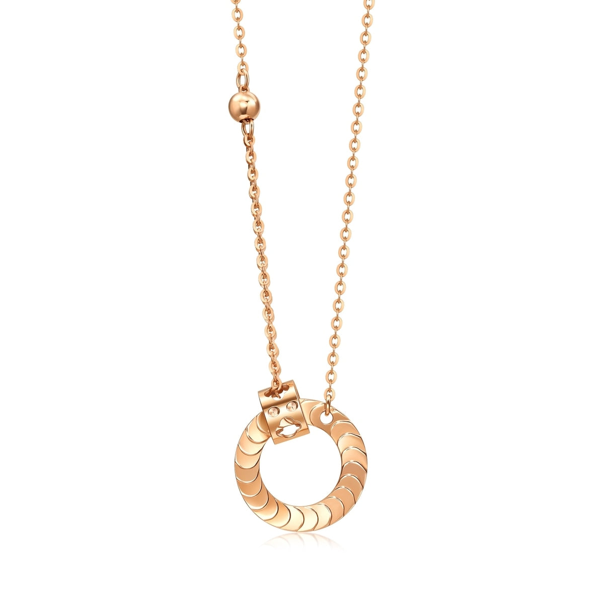 This 18K Rose Gold Necklace by Chow Sang Sang features a stylishly simple and modern design with intricate overlapping circles. The added buckle gives an extra dimension of fashion, glowing with dazzling allure, perfect for both everyday wear and special occasions.
