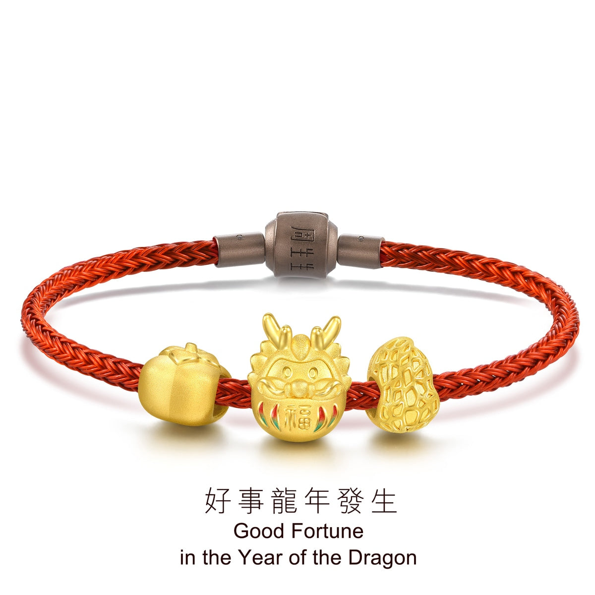 This Blessings 999 Gold Dragon Charm by Chow Sang Sang is designed to bring luck and good fortune in the Dragon Year. Crafted with traditional symbolism, the charm features intricate detailing and a gradient of colors, symbolizing harmony and success in the coming year.