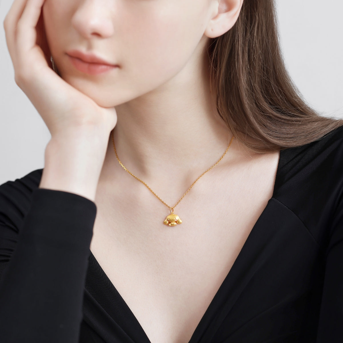 This Cinnamoroll 999.9 Gold Pendant by Chow Sang Sang features the beloved character with a movable clasp between the head and body, allowing it to swing from side to side. Enhanced with vibrant and colorful coating, this pendant adds a lively and adorable touch.