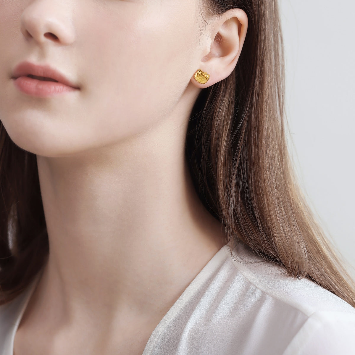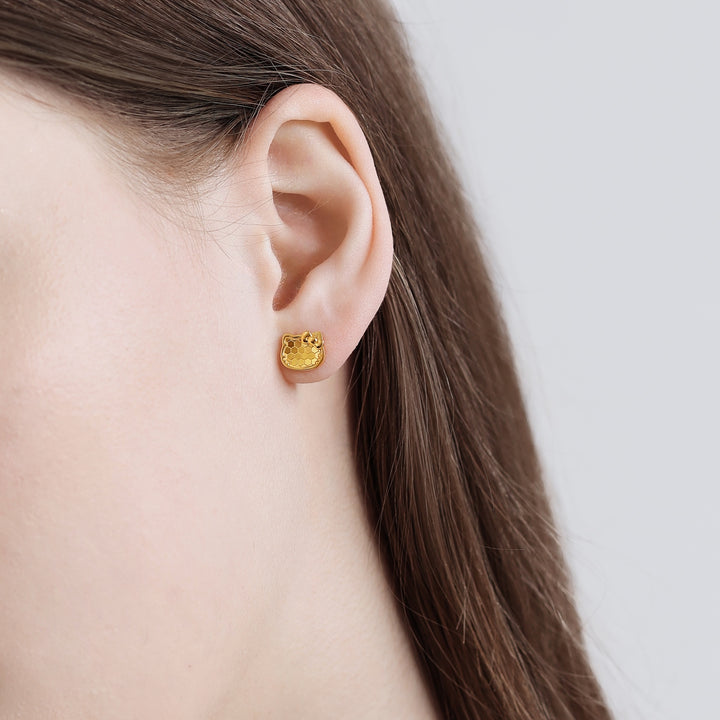 This Hello Kitty 999 Gold Single Earring by Chow Sang Sang features the beloved character, crafted using the innovative 5G gold technique that enhances the hardness of the gold. The surface is cut into honeycomb facets, creating a high-gloss mirror effect that reflects dazzling radiance, making it a versatile and stylish accessory for everyday wear.