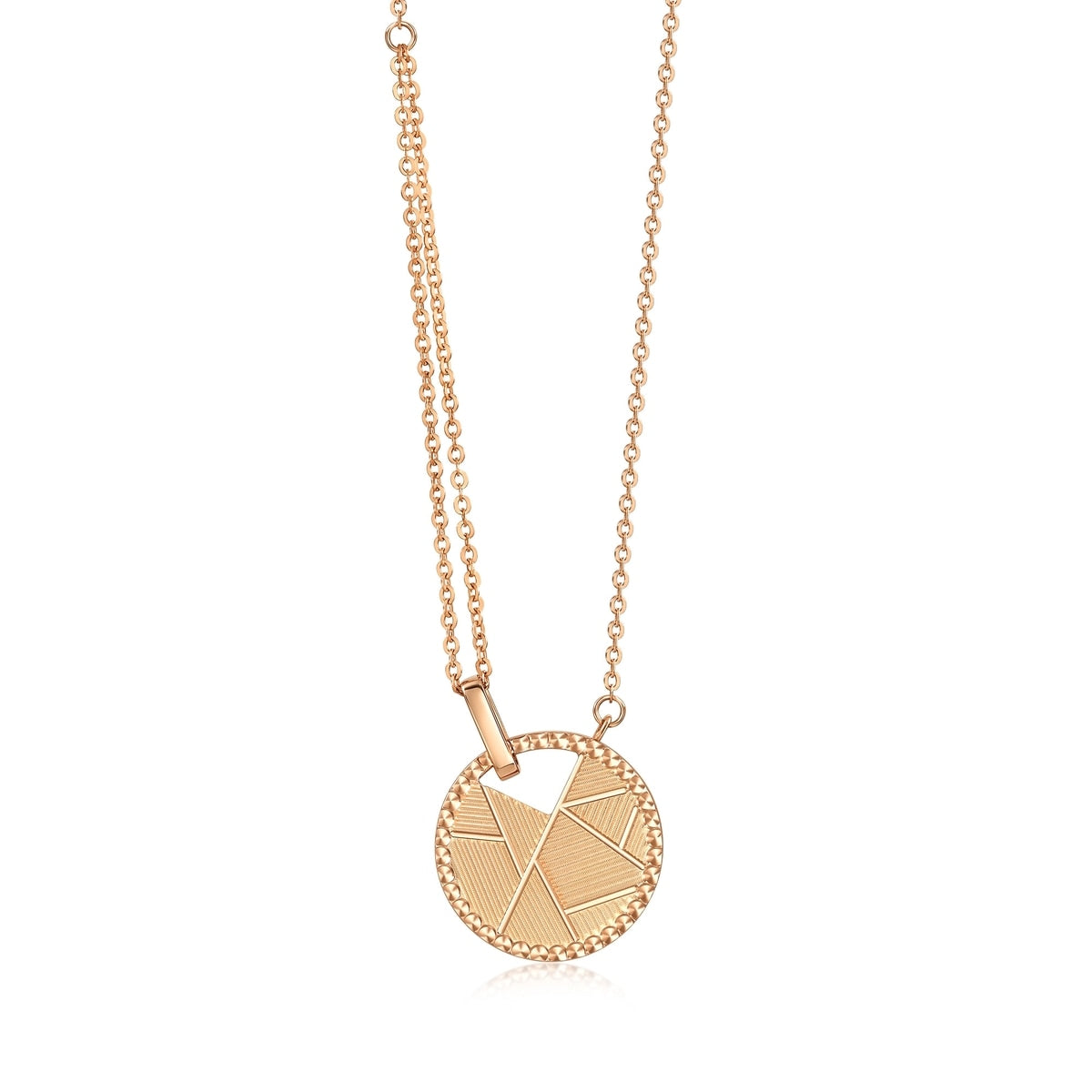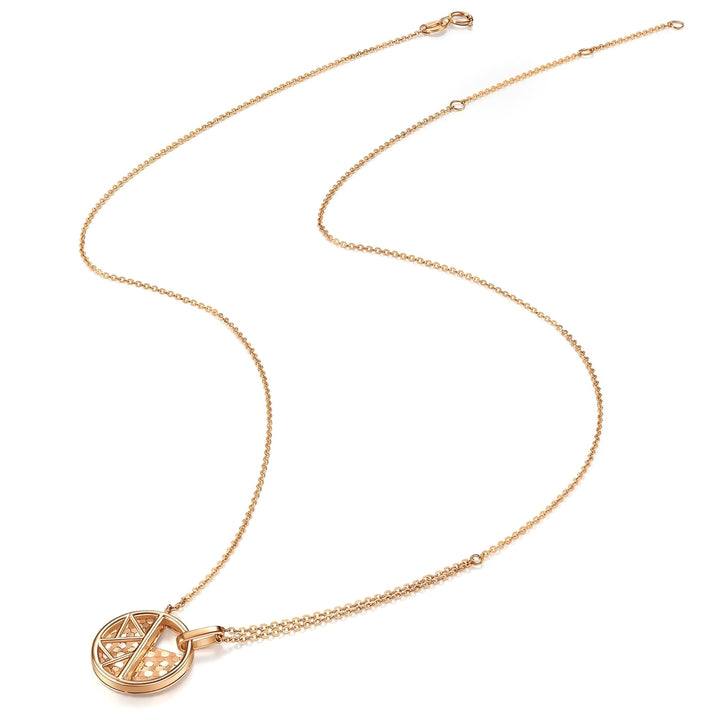 This 18K Rose Gold Necklace by Chow Sang Sang elevates your style with its geometric forms of circles and triangles. Featuring a wavy honeycomb engraving and a double necklace chain, this unique piece adds an extra edge to any look.