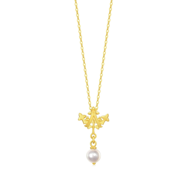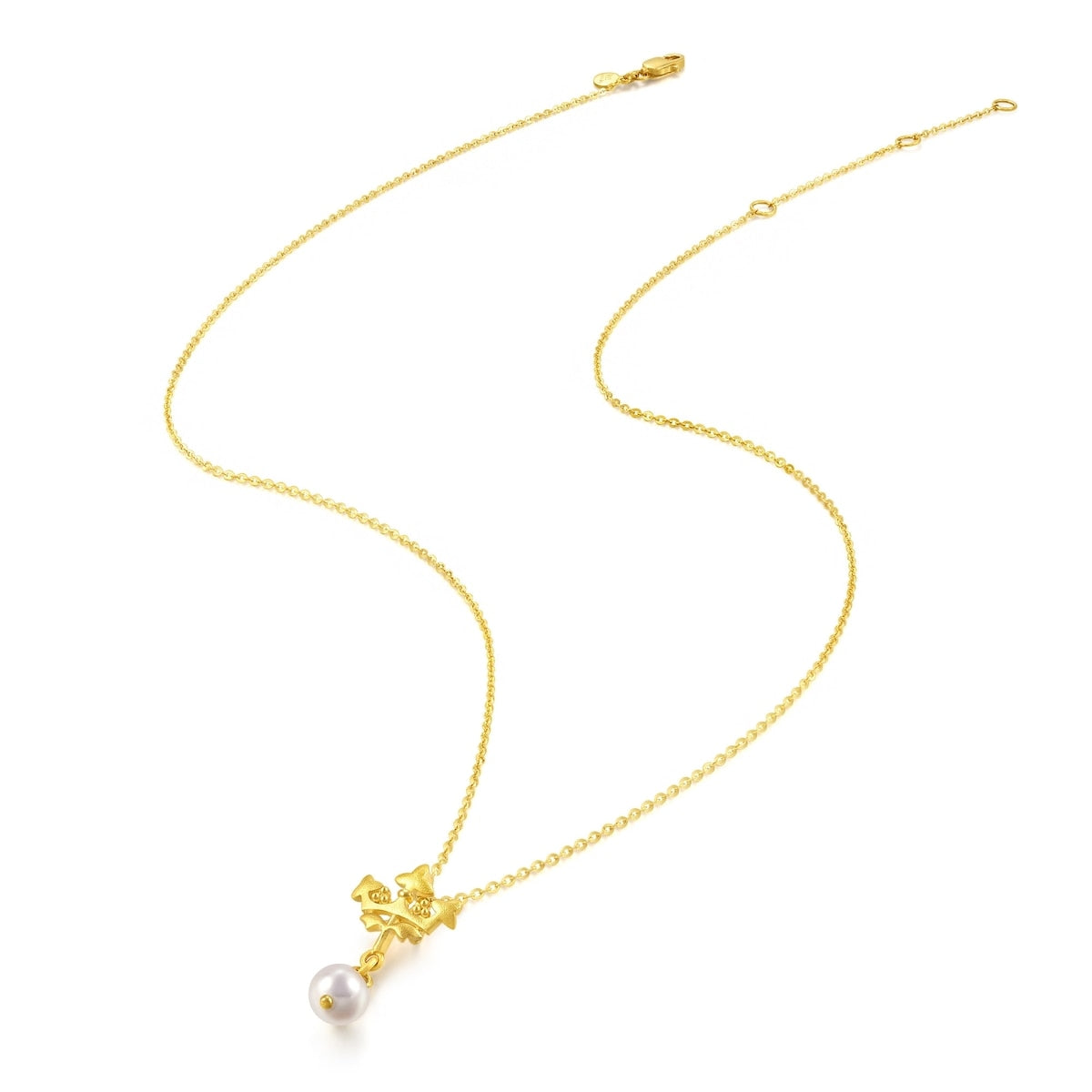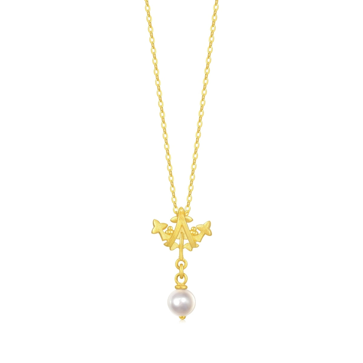 This Art of Romance 999.9 Gold Necklace by Chow Sang Sang features a crown motif inspired by a decorative wallpaper design in the V&A collection by British architect A.W.N. Pugin (1812–52). The design was produced for the firm of Crace, one of London's premier interior decorating firms of the 19th century, adding an air of luxury and historical charm.