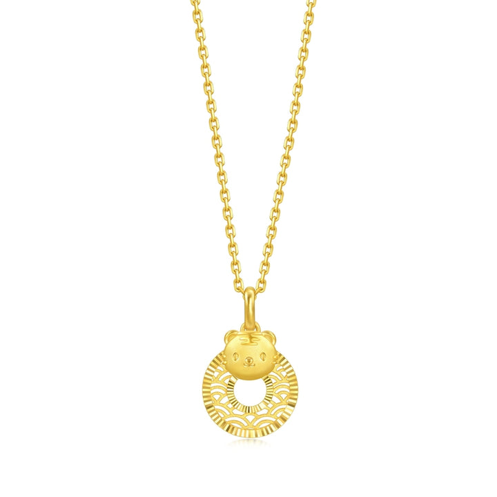 This New Year & Chinese Zodiac 999 Gold Pendant by Chow Sang Sang features a beautifully detailed, three-dimensional tiger shape. Crafted with floral and water wave patterns, this pendant, made with the 5G gold technique, represents good luck, brightness, wisdom, and eternity.