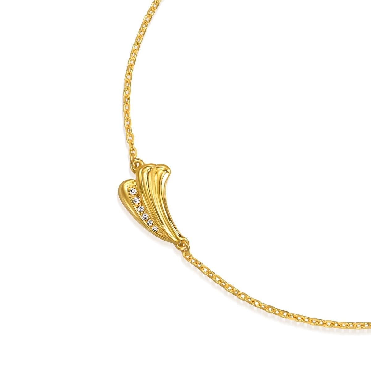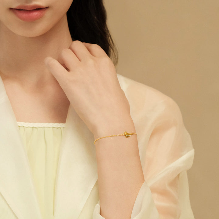 This Taffy 999 Gold Bracelet by Chow Sang Sang, inspired by a mermaid’s tail, is crafted using the 5G hard gold technique. It showcases an exquisite multi-dimensional structure, adorned with sparkling diamonds that resemble shimmering splashes of water. Perfect for everyday wear, it offers captivating brilliance and an adjustable clasp for personalized length.