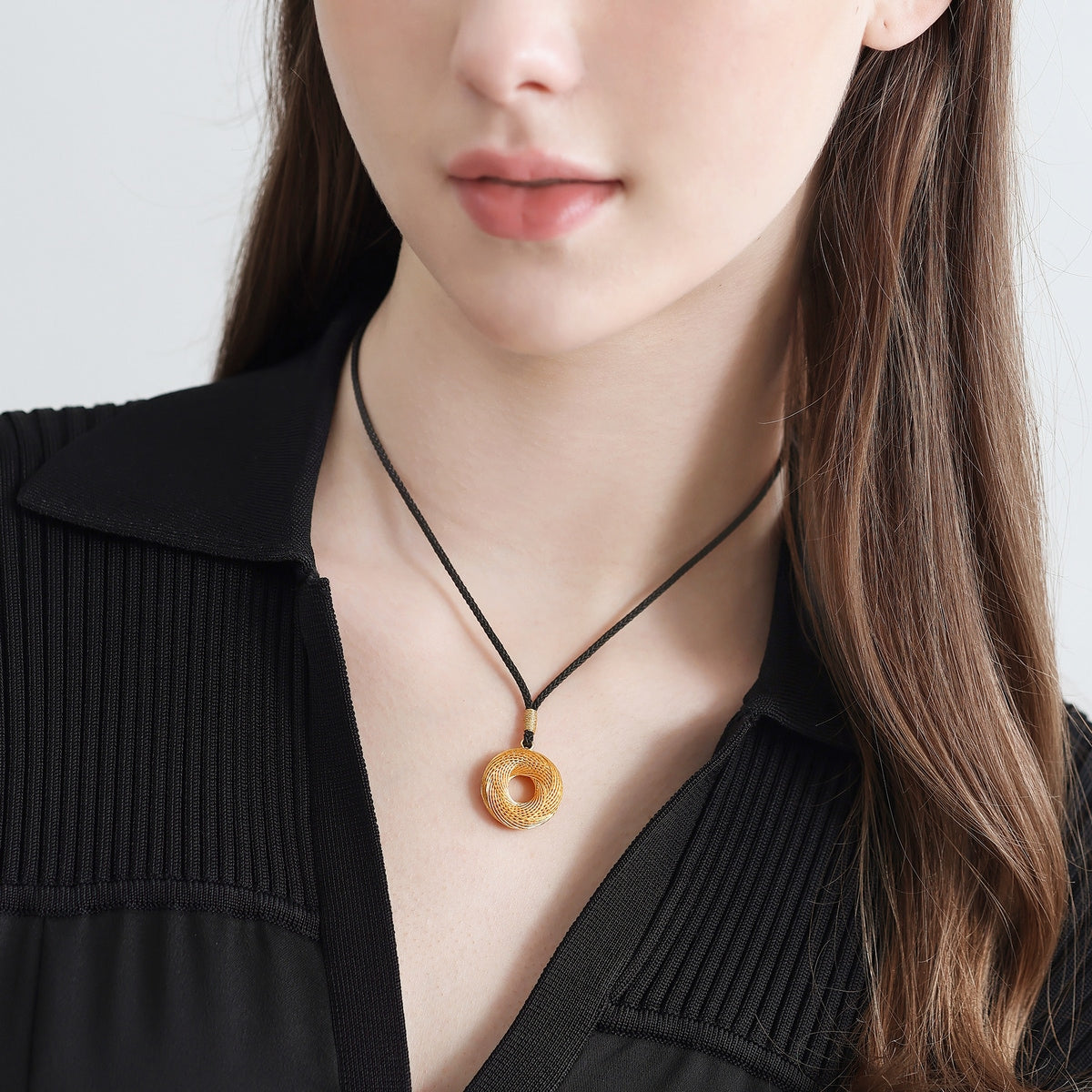 This 'The Oriental' 999.9 Gold Necklace by Chow Sang Sang draws on the symbolic 'weave pattern.' Crafted using advanced 3D printing technology, the necklace features intricate gold thread motifs that embody an endless intertwining of love and emotions. This piece exudes heritage with a modern touch.