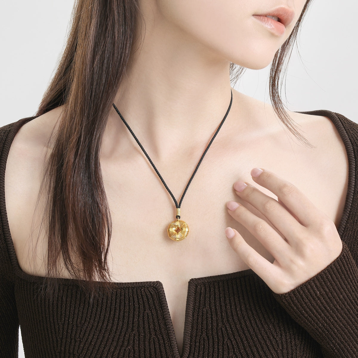 This 'The Oriental' 999.9 Gold Necklace by Chow Sang Sang showcases a similar 'weave pattern' design, crafted with intricate 3D-printed gold threads that symbolize enduring love and emotion. A stunning statement piece that merges tradition and innovation.