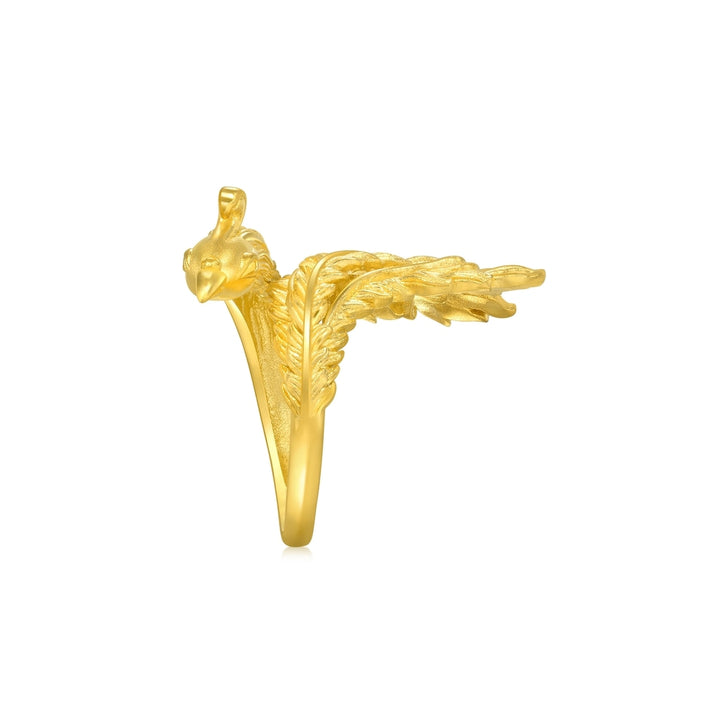 This 999.9 Gold Phoenix Ring by Chow Sang Sang captures the elegance and grace of the phoenix, a symbol of renewal and strength. Its intricate design makes it a captivating piece for those who appreciate meaningful jewelry.