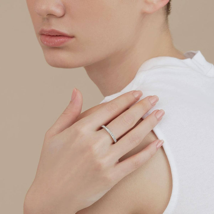 Based in Hong Kong, Emphasis shares a fresh take on fine jewelry with a focus on everyday elegance. Combining innovative designs, precious materials and superior craftsmanship, Emphasis creates pieces expressing multifaceted beauty. Believing well-designed jewelry is all about unique details, every piece by Emphasis will draw you in for a closer look. Emphasis also collaborates with talented designers to create jewelry collections that will surprise and delight.Style notes: This 18K rose gold eternity ring shimmers with diamonds embroidered with subtle yet delicate hexagram pattern, symbolic of luck. Style up your glamour by wearing it in layers with rings of the same collection.Price: Please note price may vary due to exchange rate differences or shipping, duties and taxes. Price may also vary with materials choice. Final price is calculated at checkout at the designer's website. Materials: 18k gold with round brilliant diamonds, total carat weight 0.91 ct.
